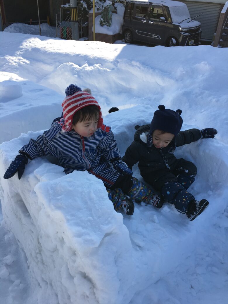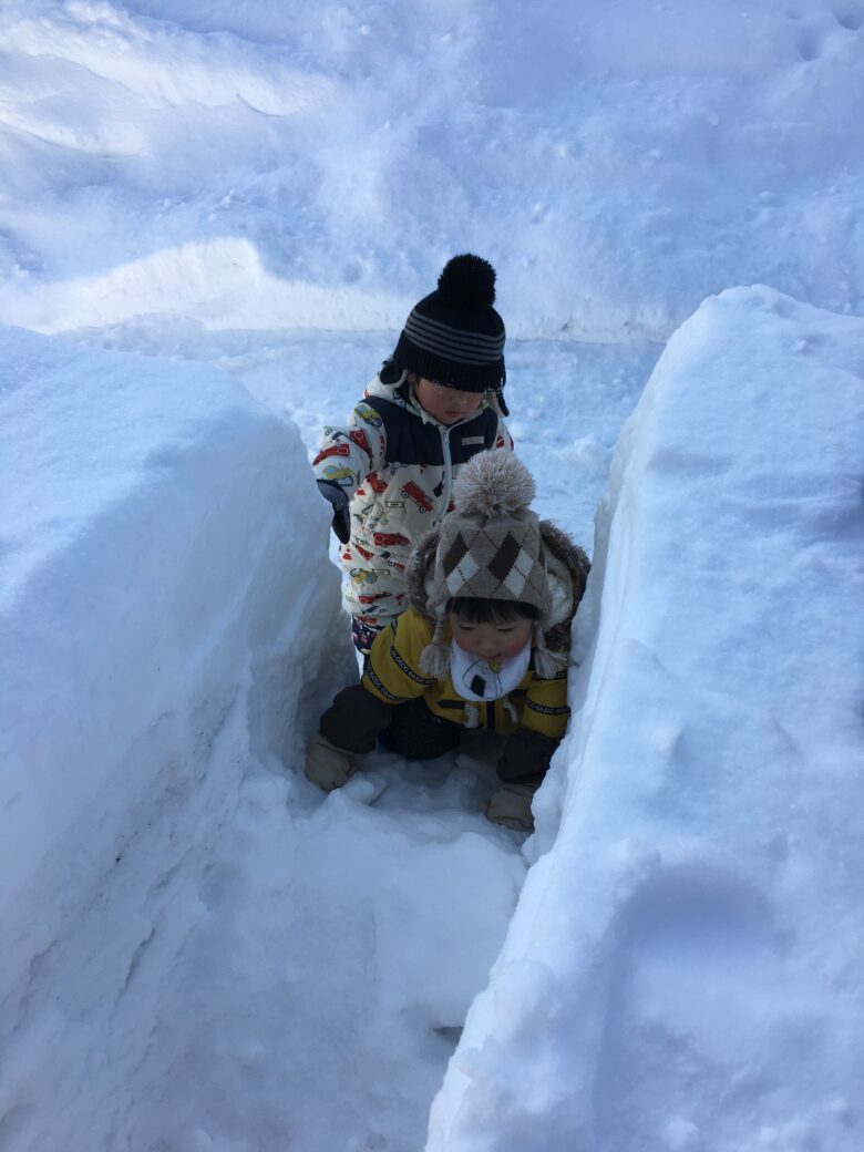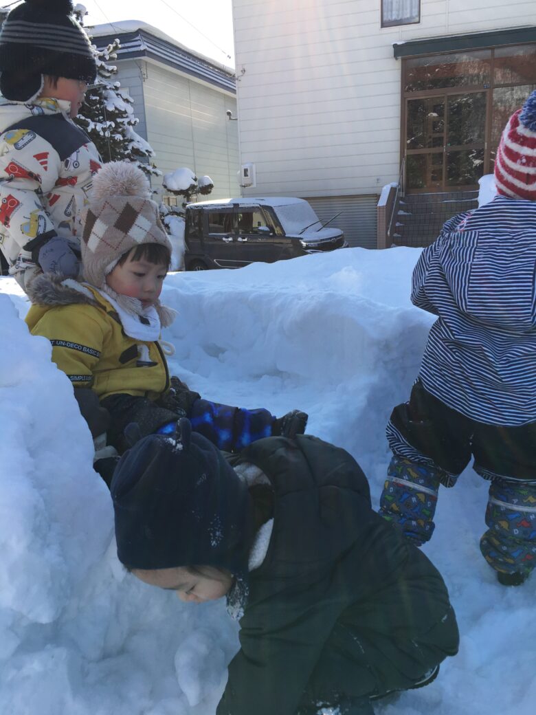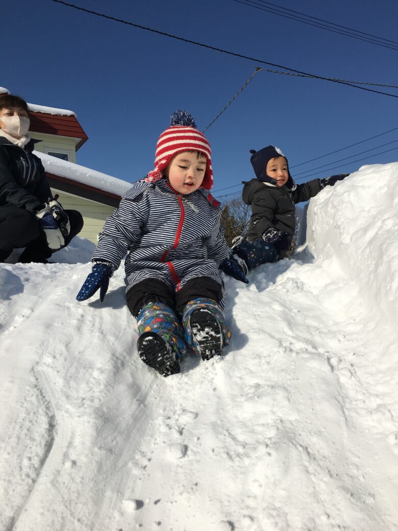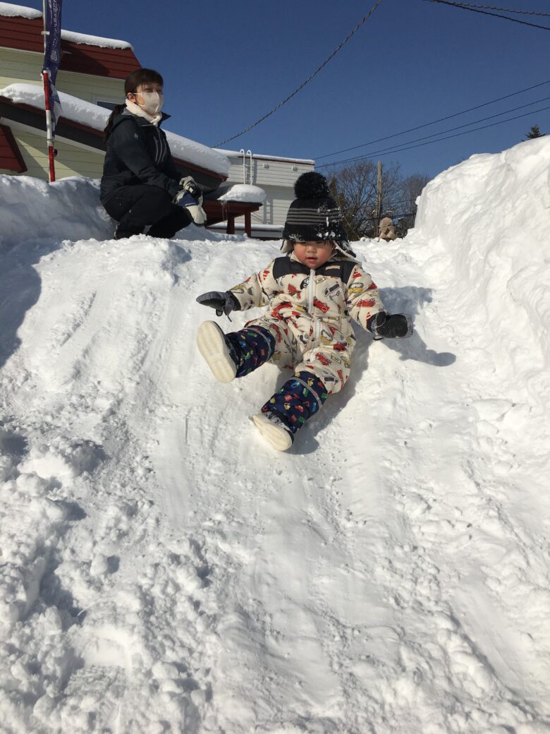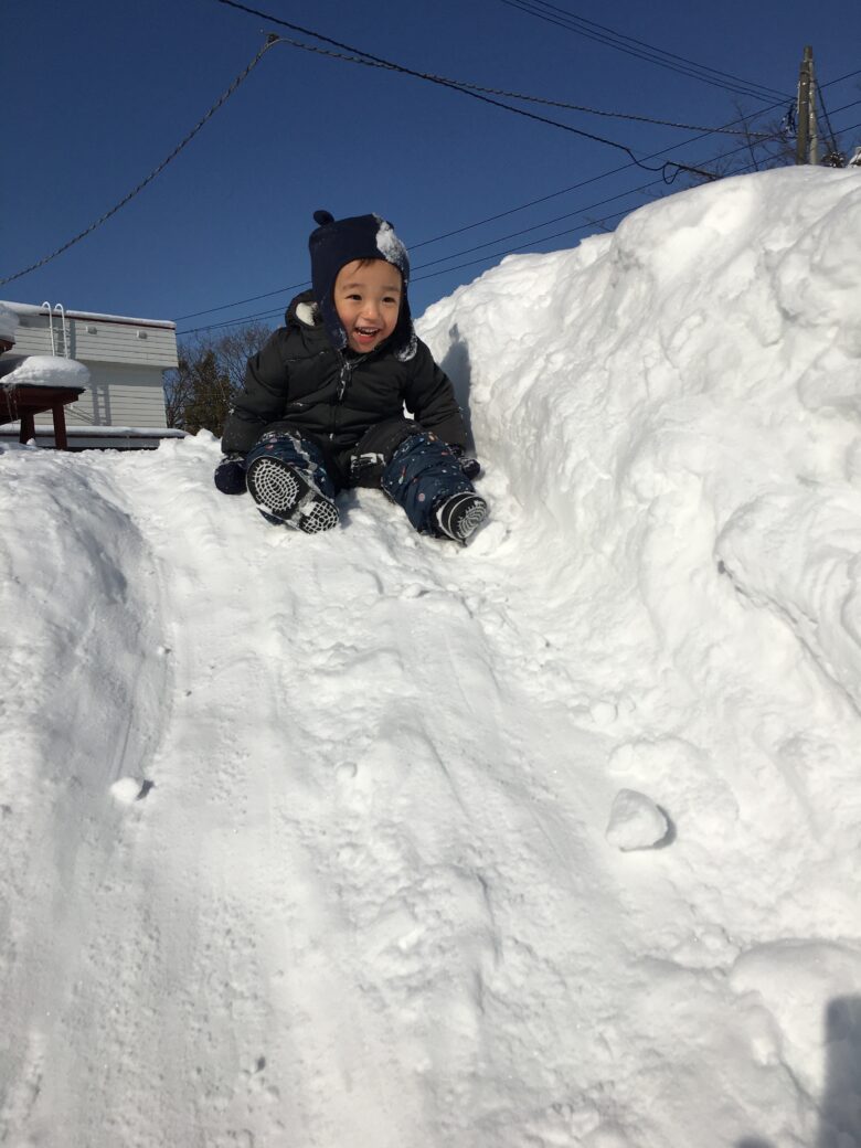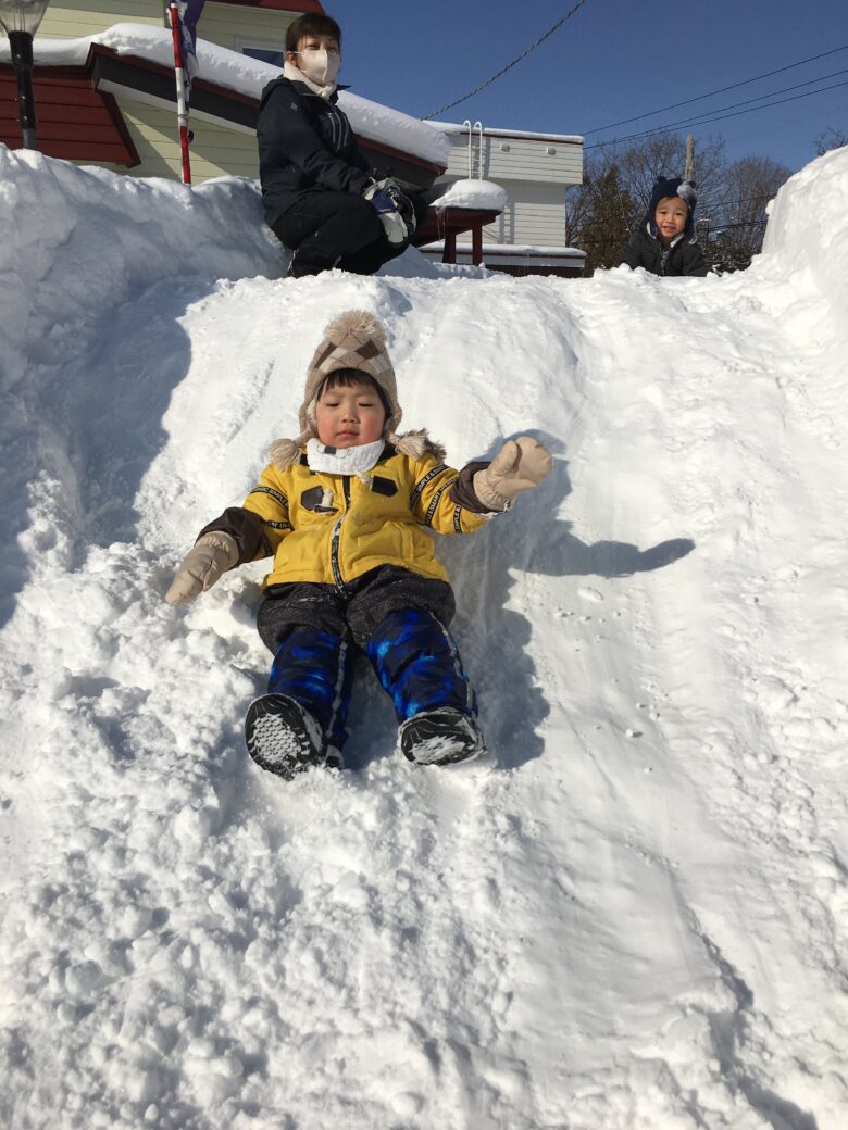 いつもより大きな雪山で距離も長く、嬉しそうに滑っていました。