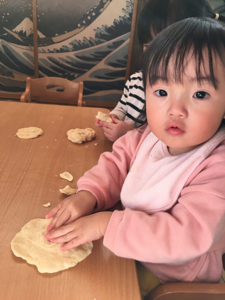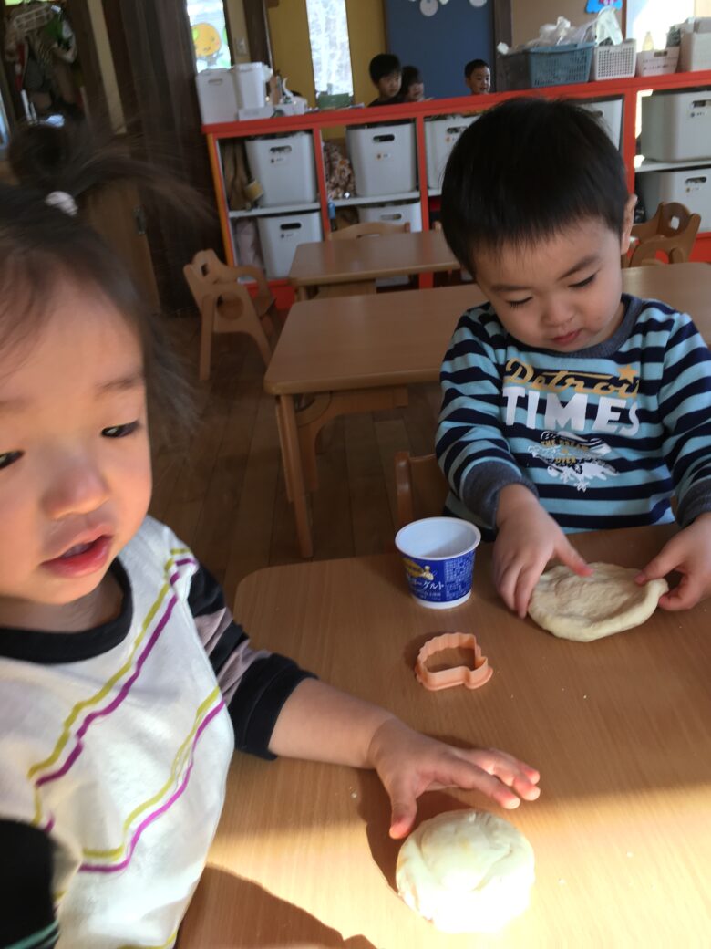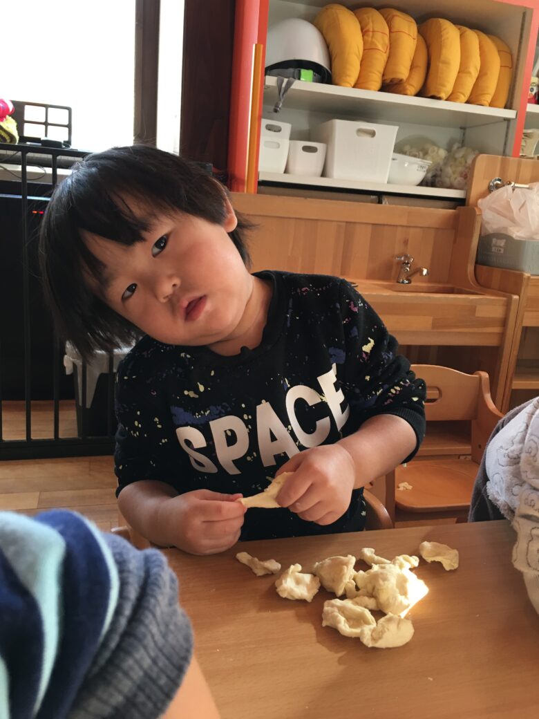 藤野園 くり組&どんぐり組  小麦粉粘土遊び