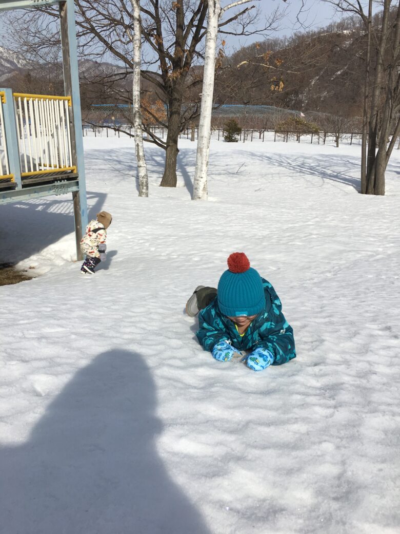 雪の上に寝ると気持ちが良いね。