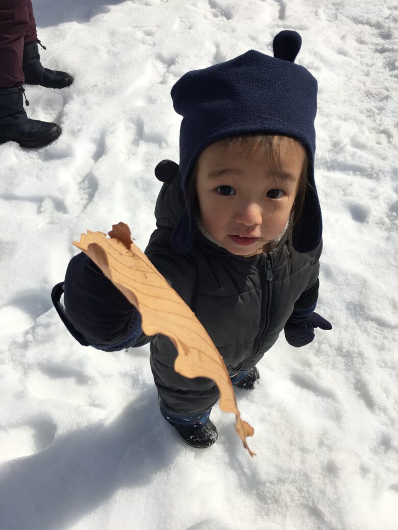 大きな葉っぱ見つけたよ。