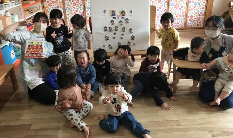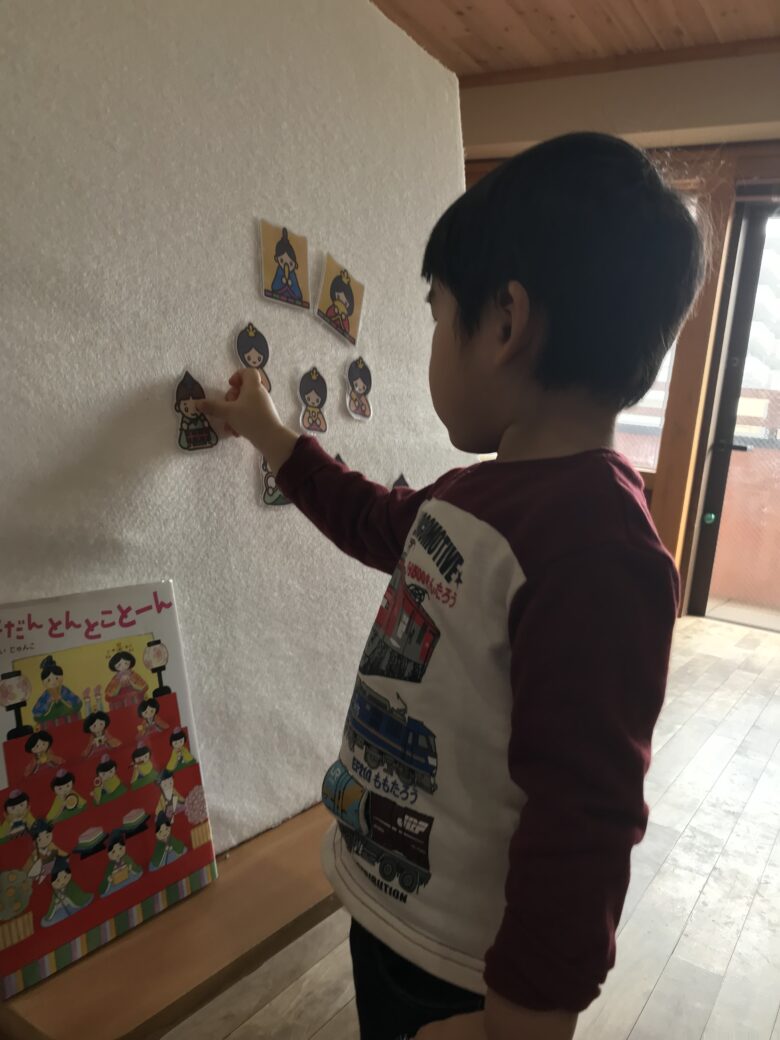 一人ずつ前に出ておひなさまを完成させるよ⭐