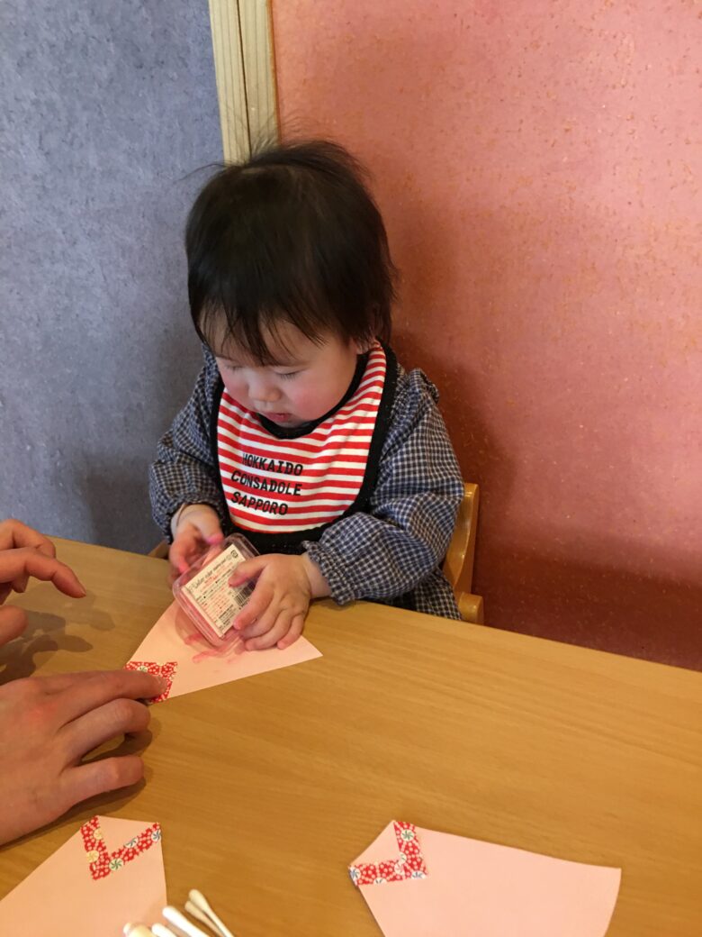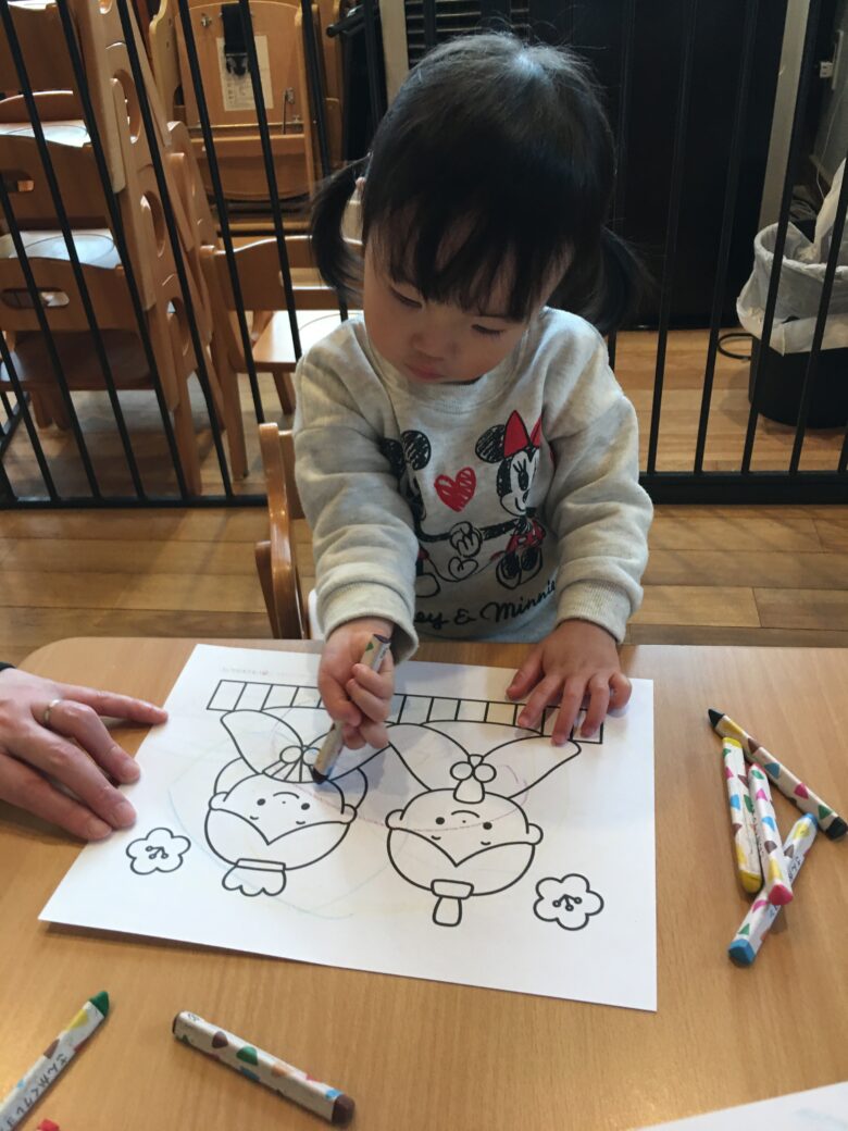 製作の後は、ひな祭りのぬりえをしました。色んな色を使ってぬってました🖍