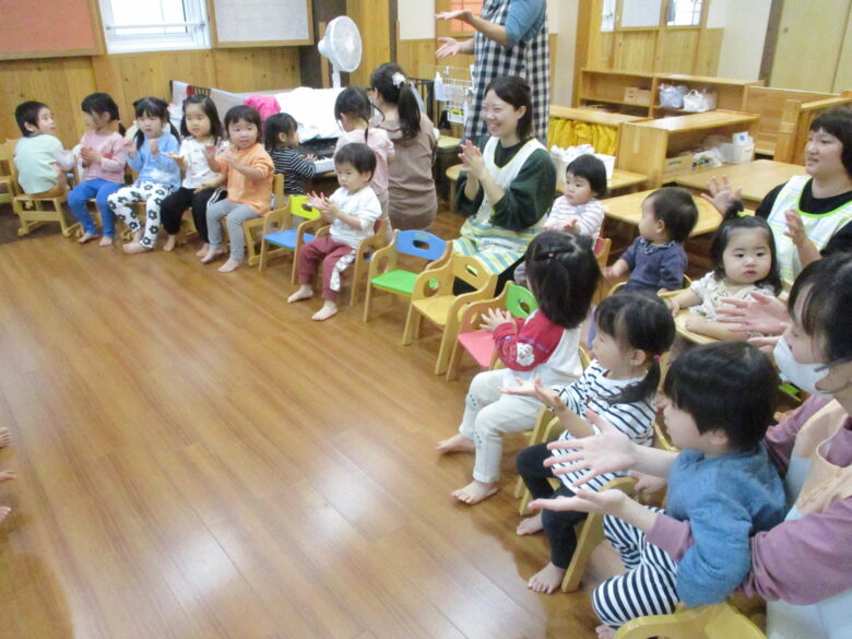 たんたんたんじょうびの歌をうたうと、お誕生のお友だちは嬉しそうにはにかんでおりました。
