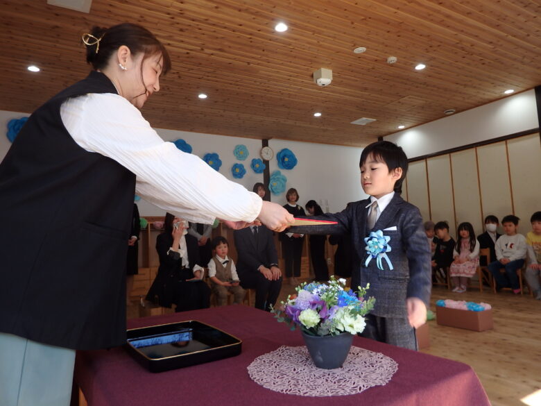 園長先生から卒園証書を受け取っています😆