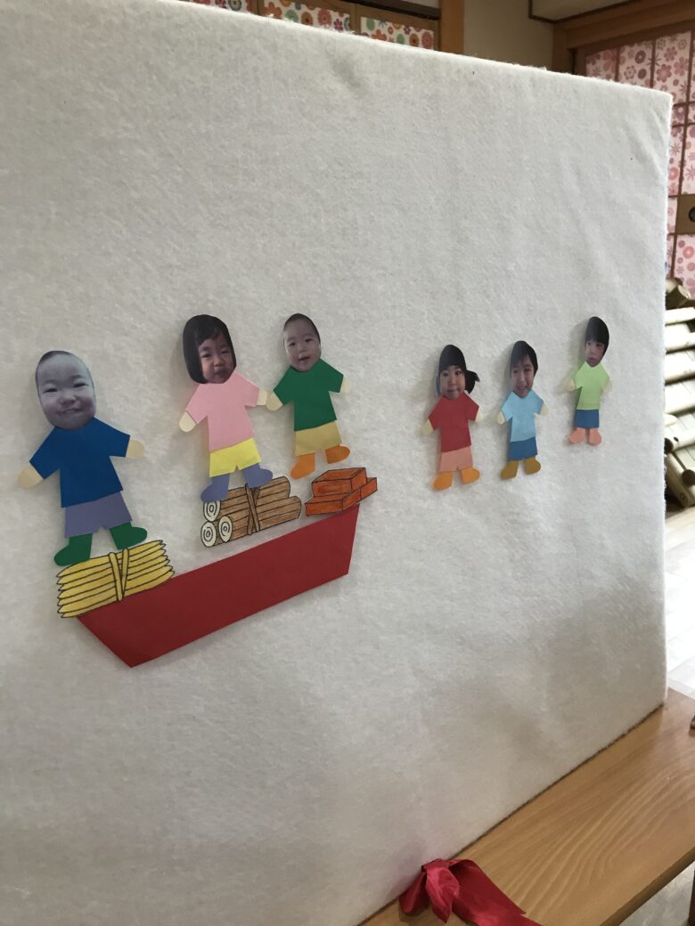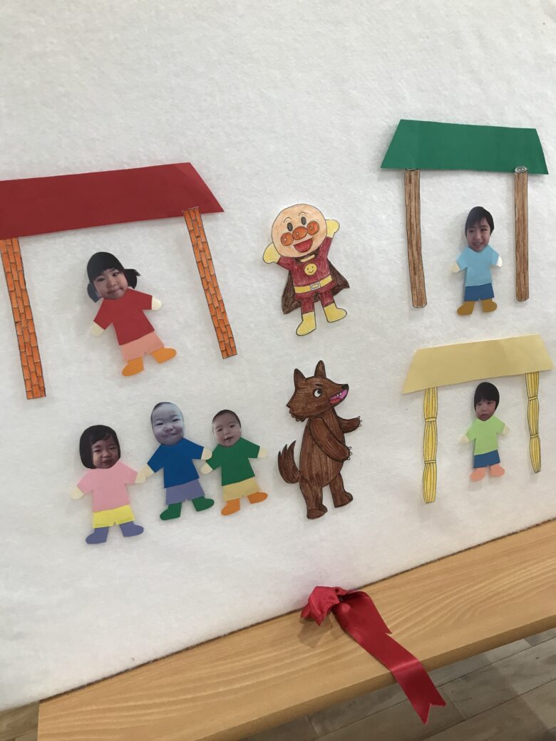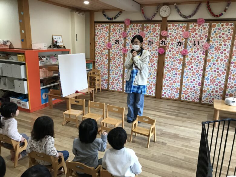 次は保育士がパネルシアターを行いました。卒園児と転園する友達が出てきて、誰かわかると名前を言って笑顔になっていました。
