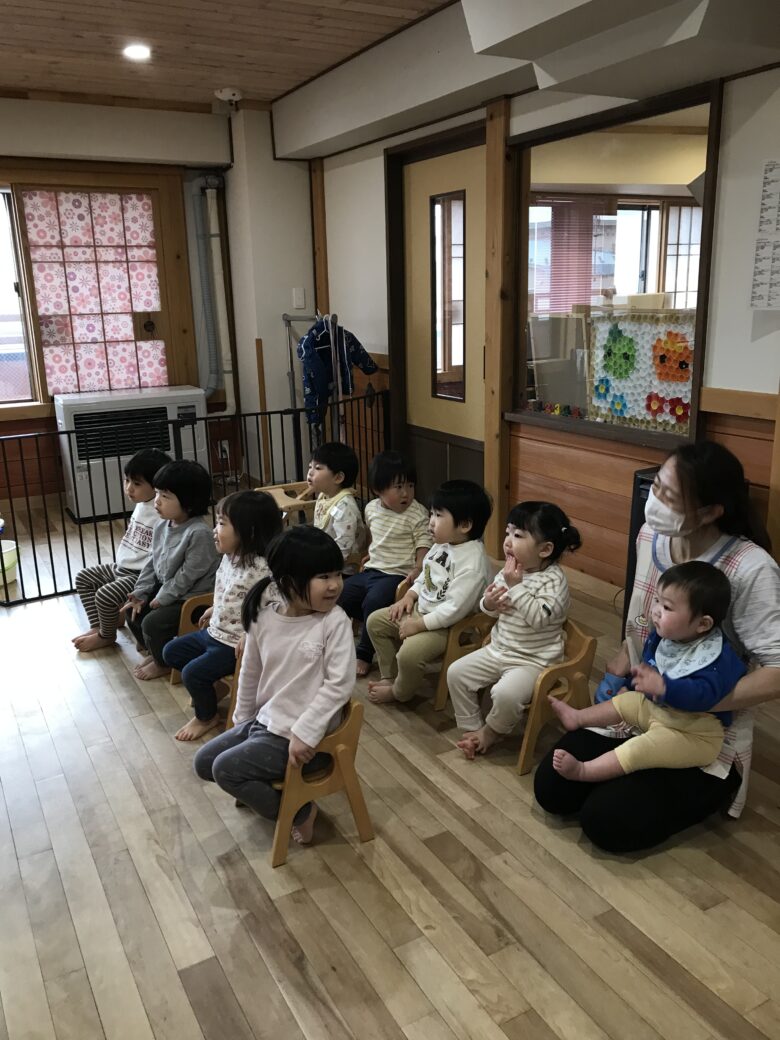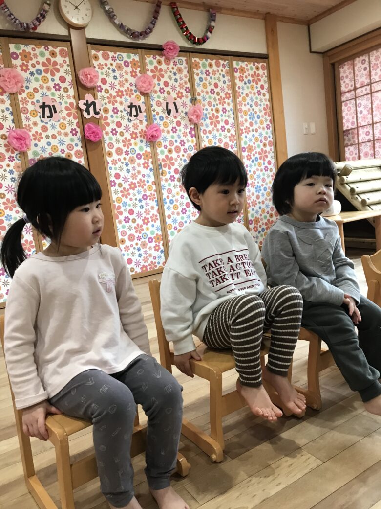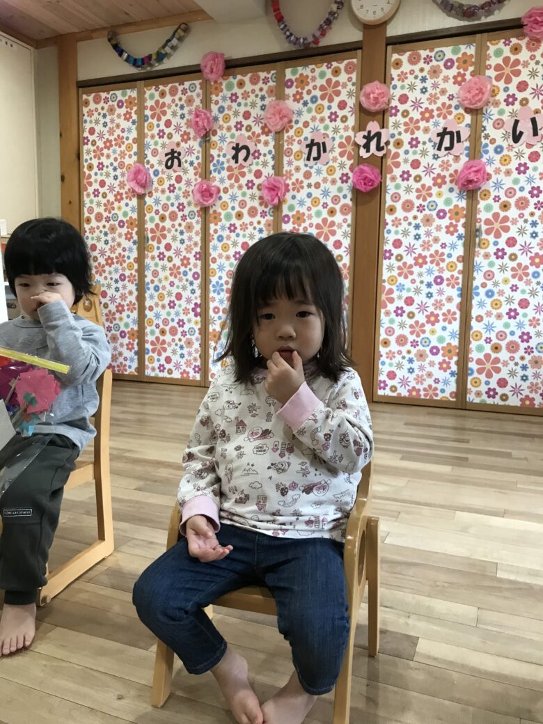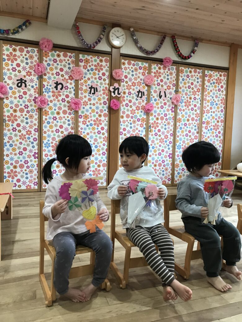 今日はお別れ会がありました。くるみ組さんはもうすぐ卒園。転園してしまう子も一緒にお別れをしました。