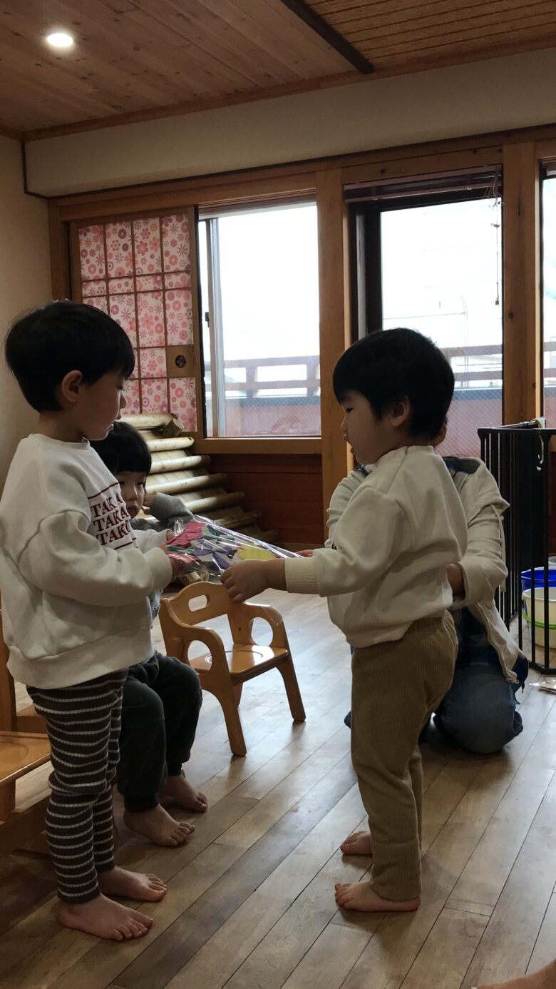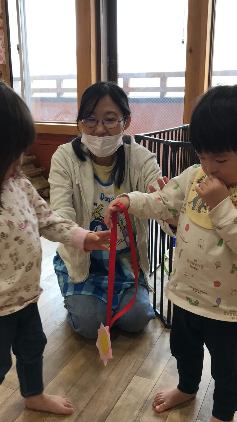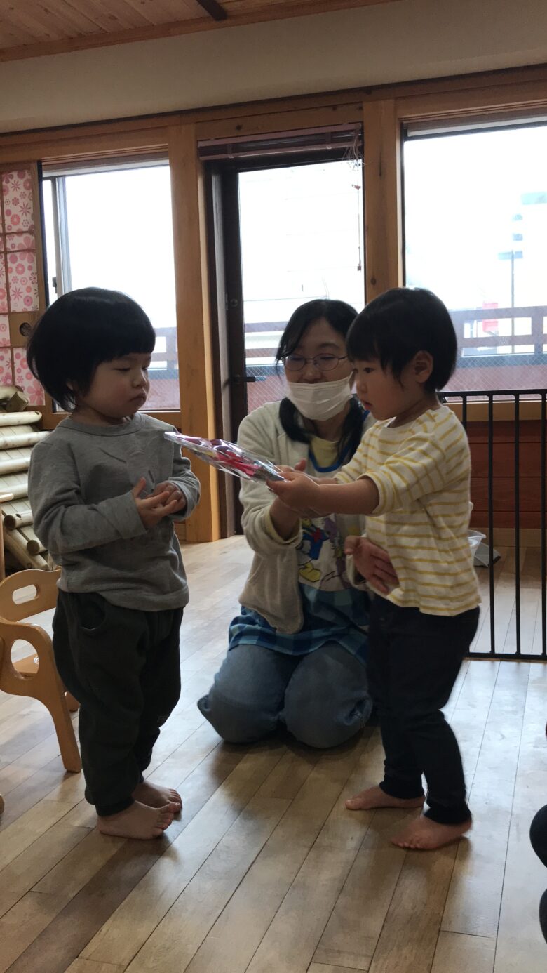 くるみ組さんにくり組さんからプレゼント🎁を渡しました。くるみ組さんたくさん一緒に遊んでくれてありがとう!