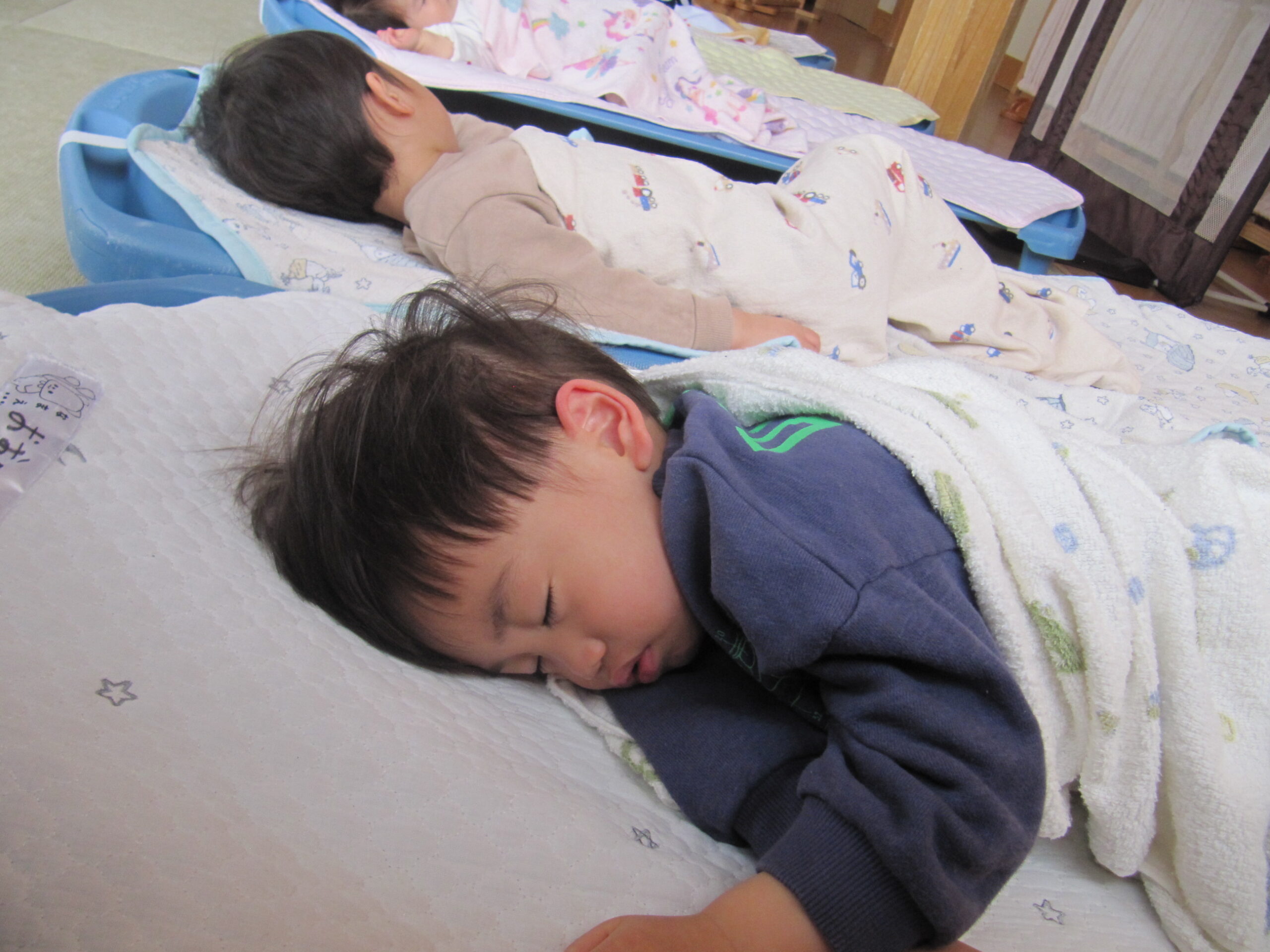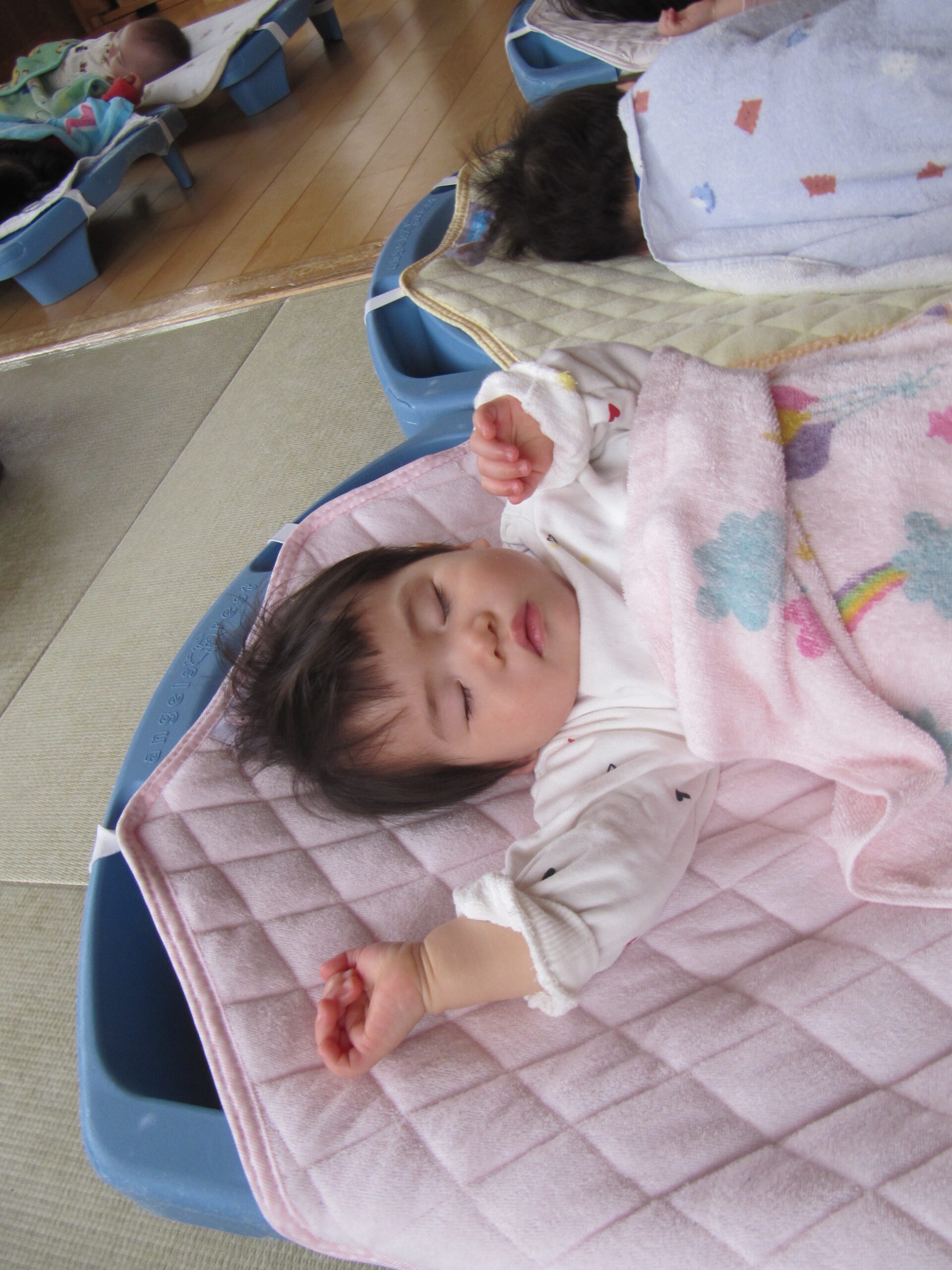 みんな、寝起きが良くて保育士と目が合うとにやっと微笑みかけてくれますよ😊