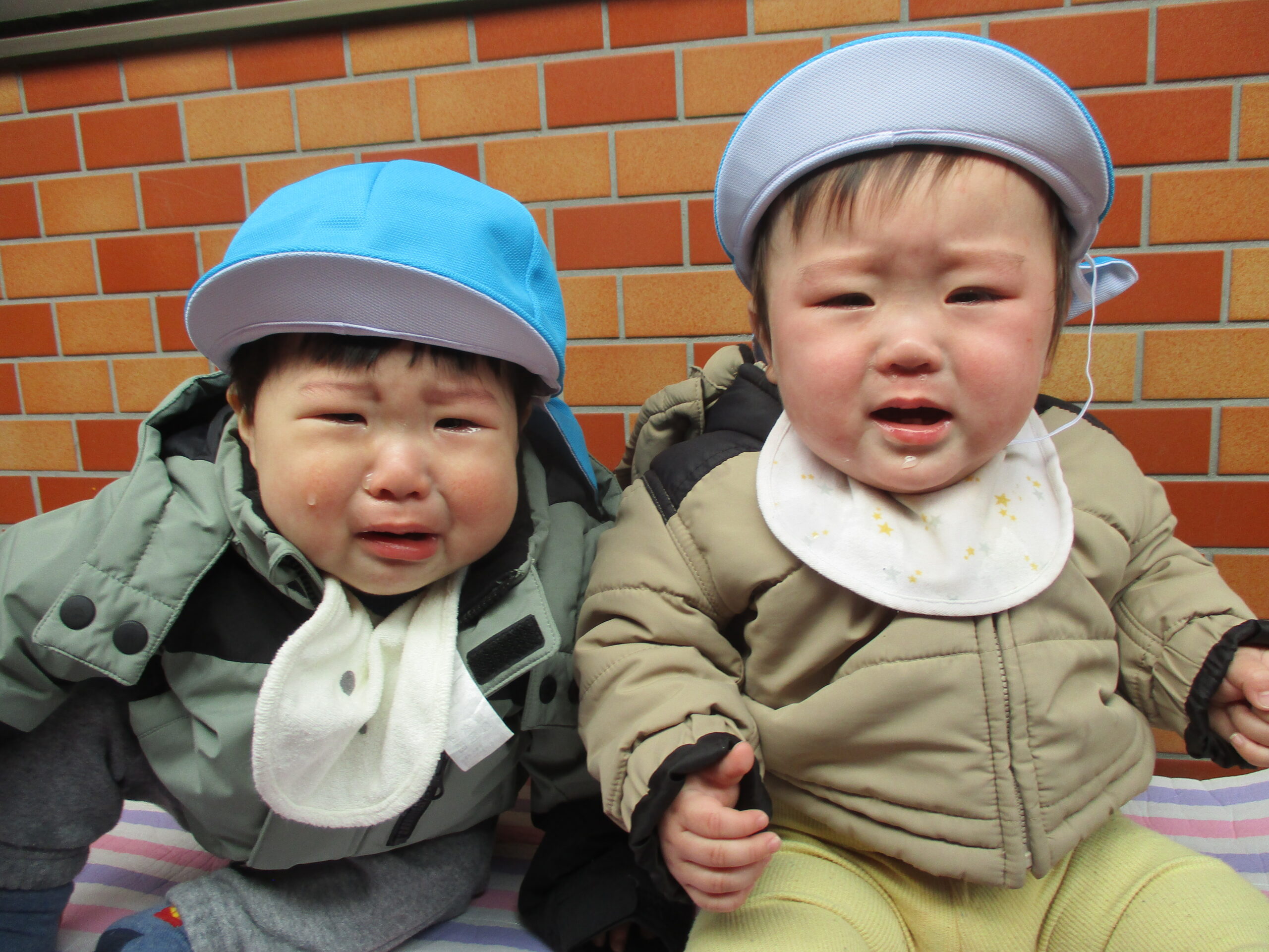 担任が写真を撮ろうと少し離れると、泣いてしまいました🥲 泣くときも一緒だなんて、仲良しさんですね😊