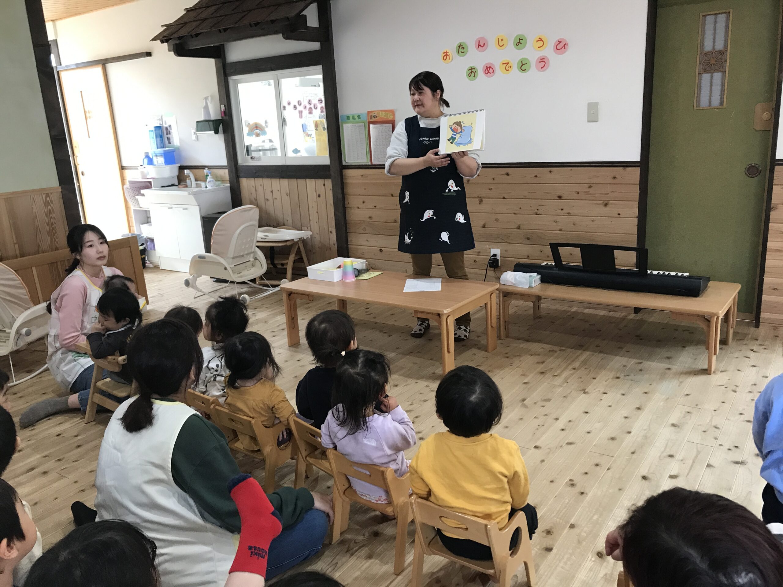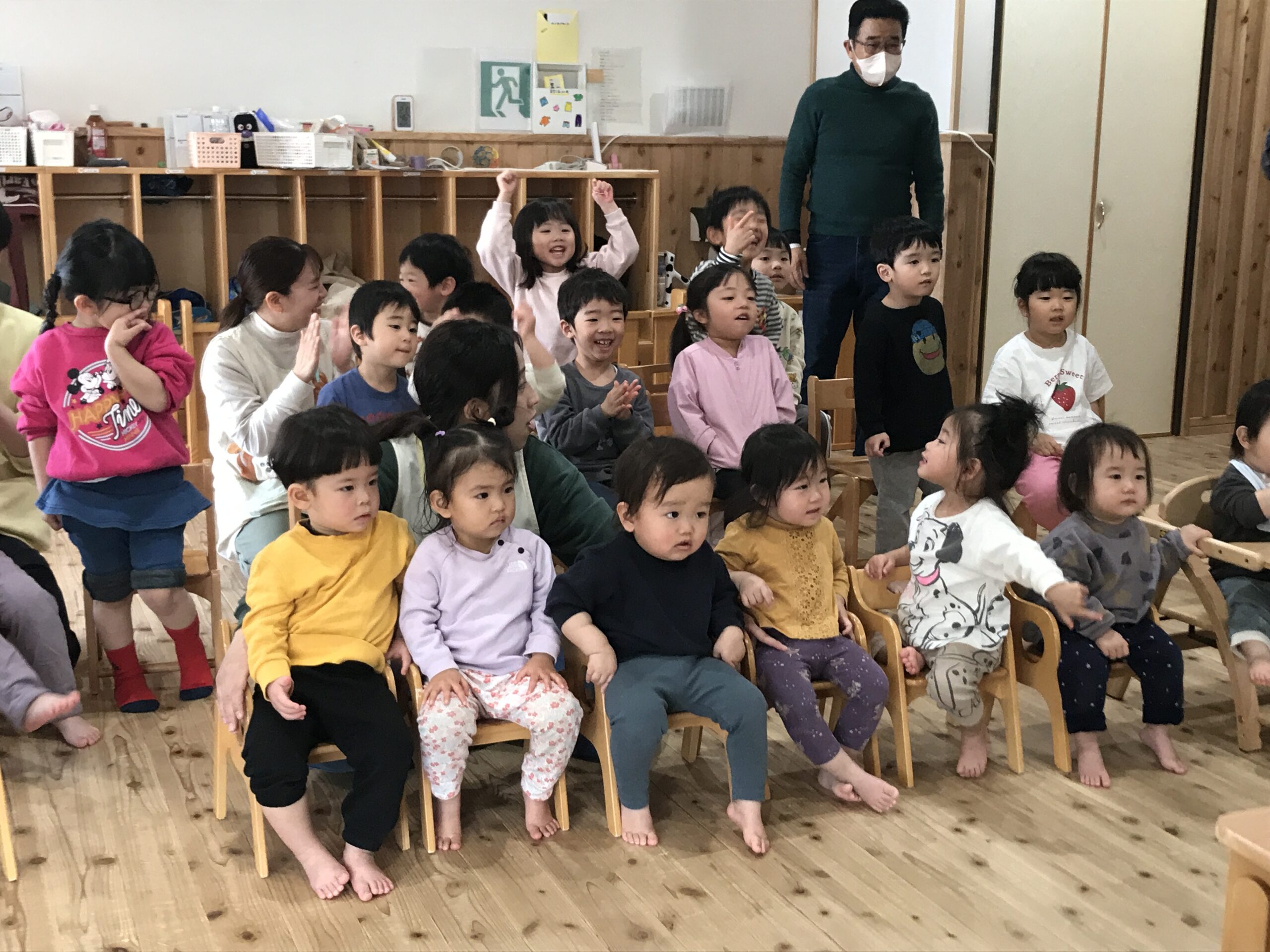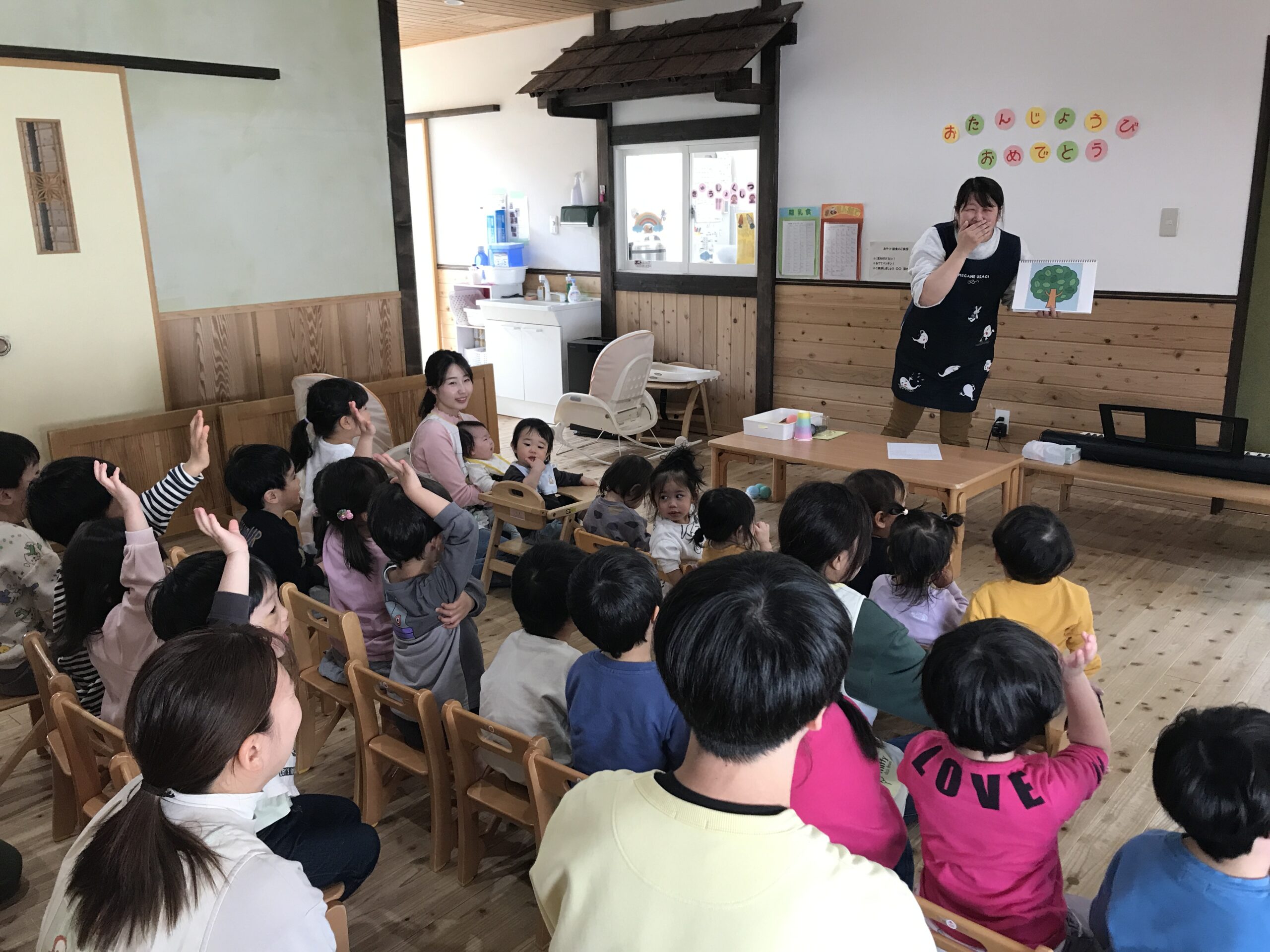 4月24日にお誕生会が行われました♪ 今月のお誕生児は、かえで組(5歳児)のお友だち1名でした! 質問コーナーでは、さすがかえで組さん!上手に受け答えをしていましたよ! 仲良しのお友だちにお誕生カードをもらうときも照れながら、「ありがとう」と言っていました♪ 保育士の出し物では、クイズや楽しそうに答えたり、簡単マジックショーに子どもたちは「えーーーーーー!!」と言って驚いたりして、楽しむ姿が見られました!!