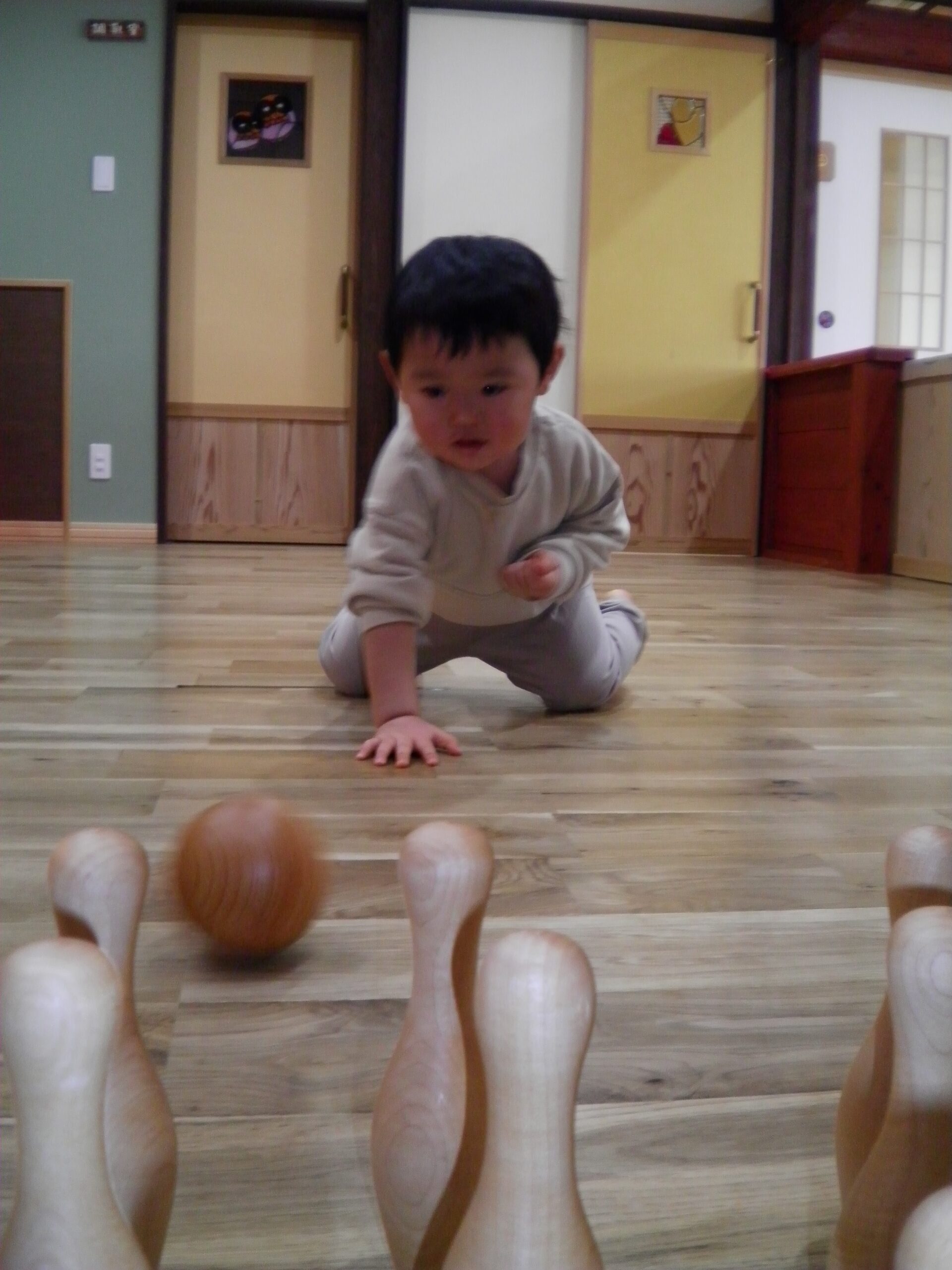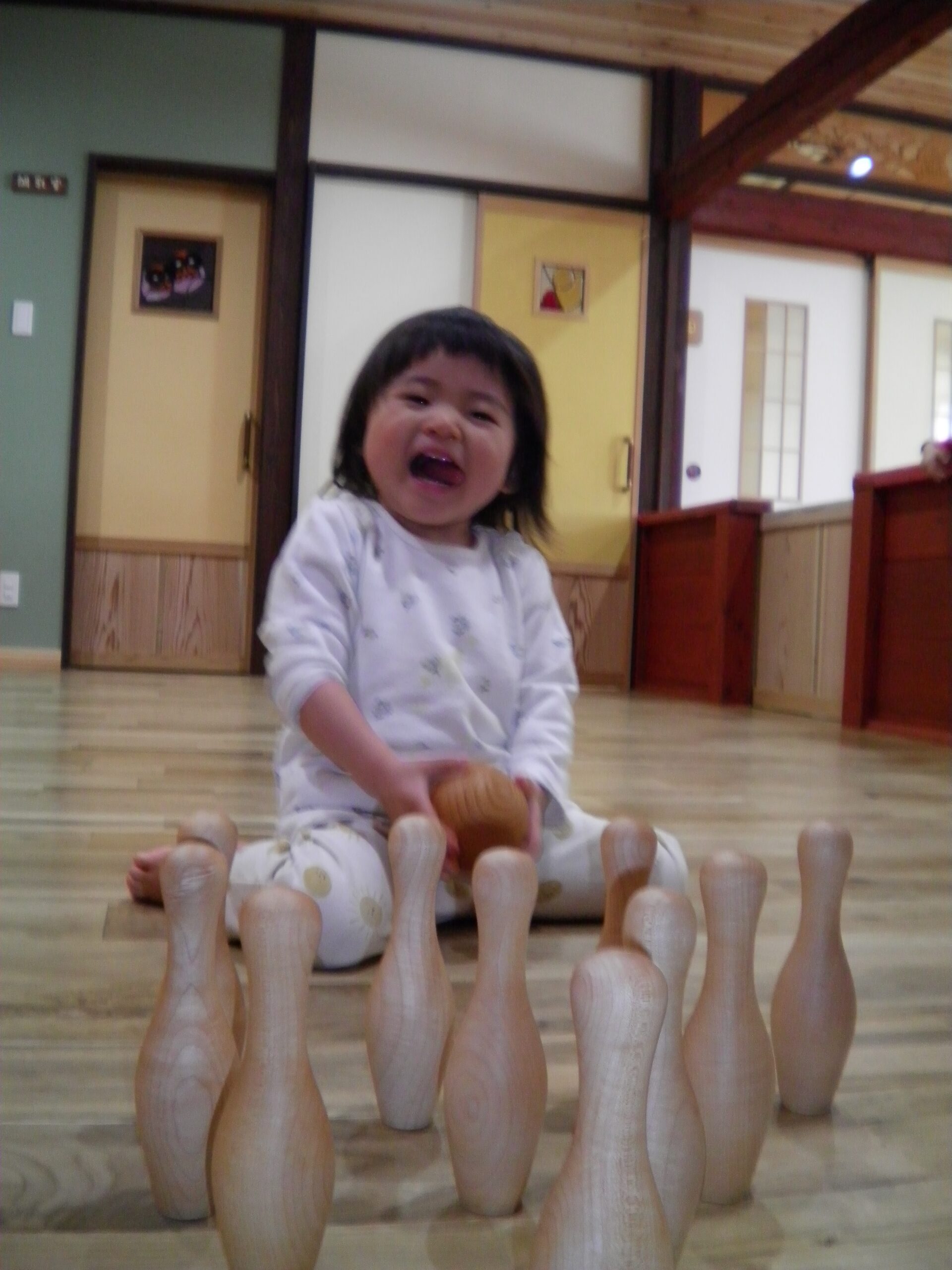 上手にピンを倒すと、満面の笑みで喜んでいましたよ👏