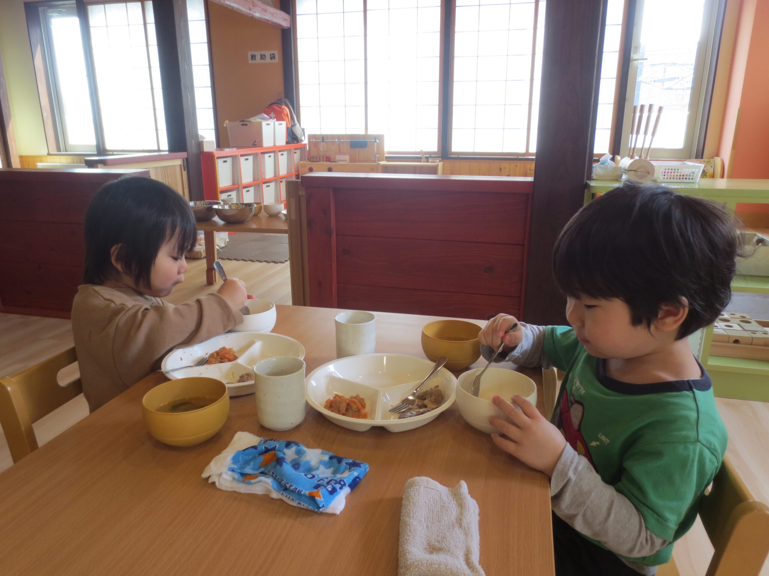 今日は3・4・5歳児の食事の様子を紹介したいと思います。