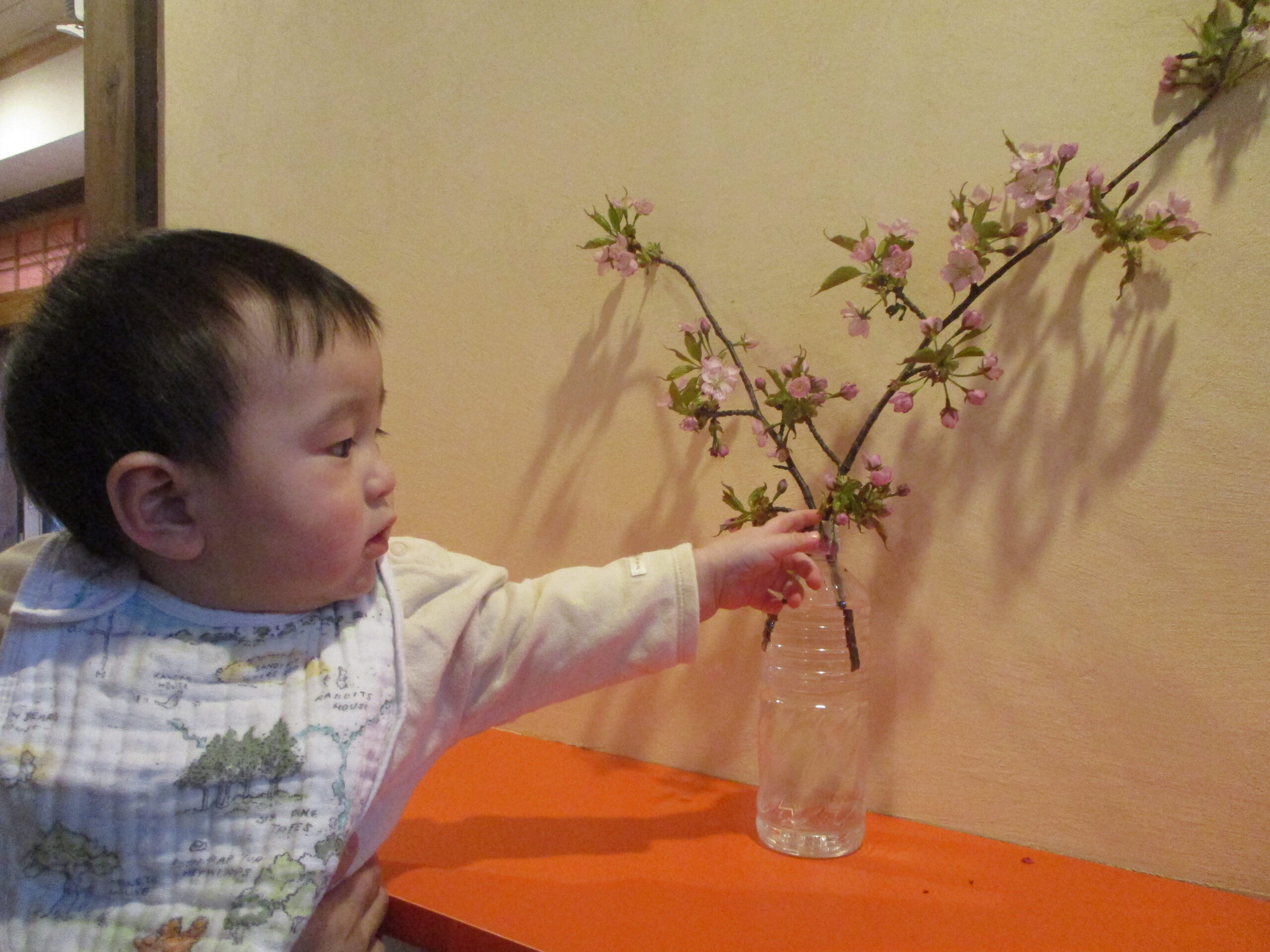 さくらの木の枝を保育園に飾りました! 発見したこどもたちは「これなに~?」「おはな~♡」と 興味津々。