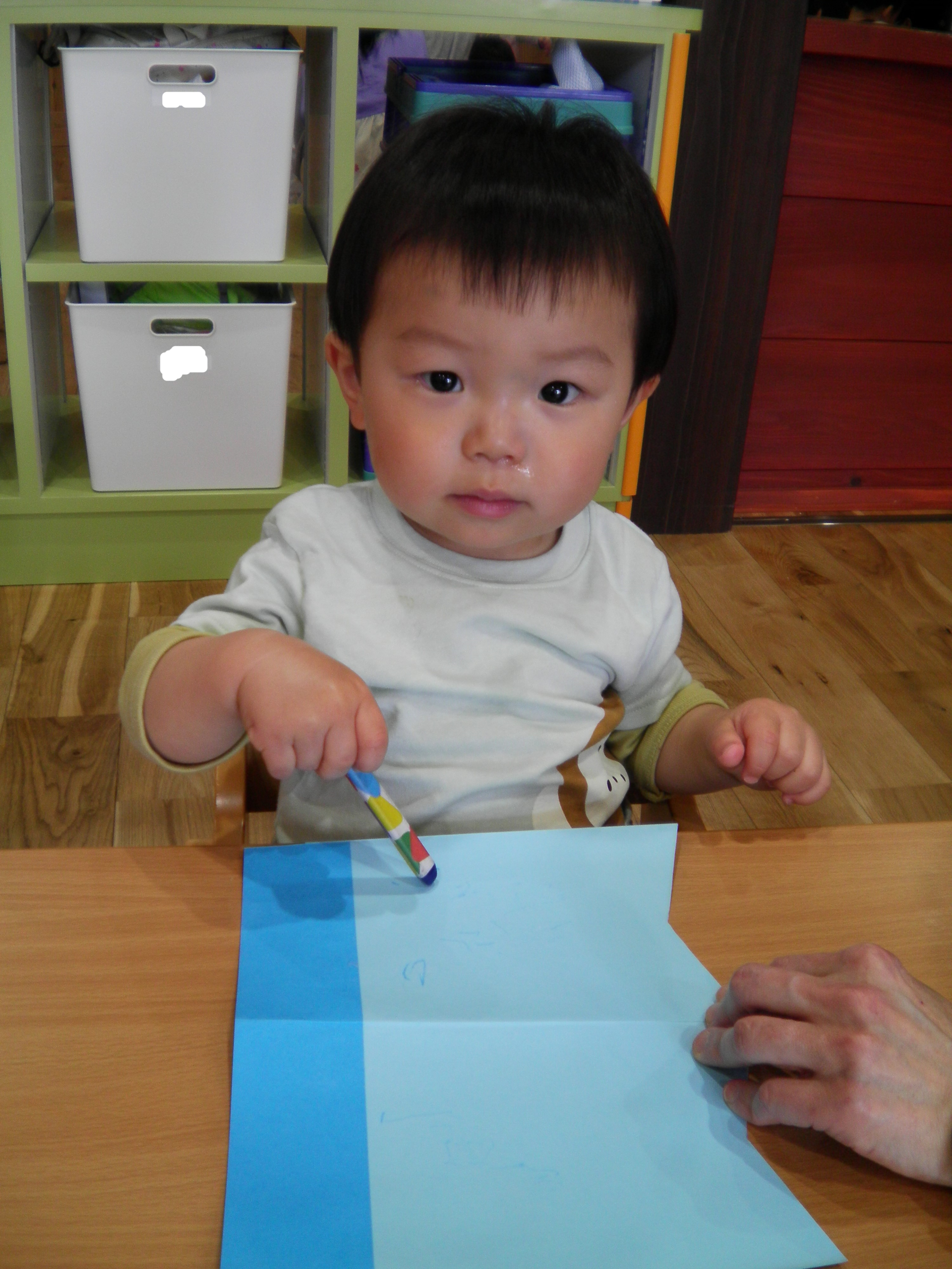 クレヨンを持って上手にお絵描きできました!