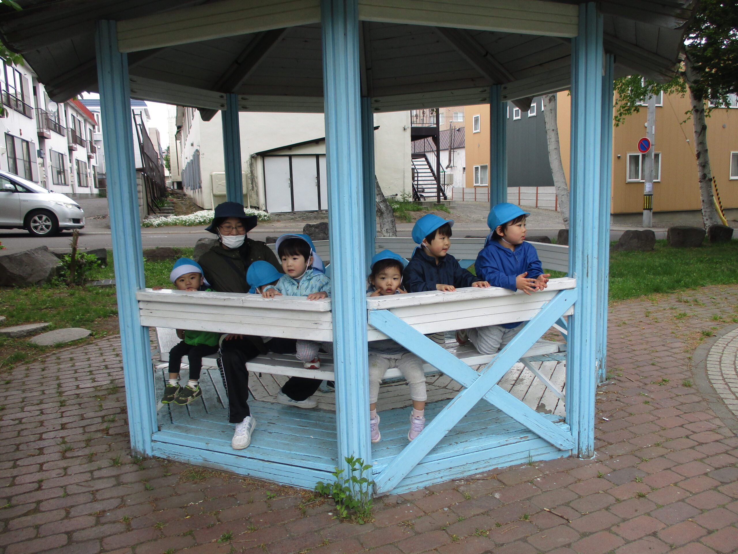 周りを見ては、指をさして「バスだー!」「鳥だよー!」と大喜びの子ども達。見るもの見るものが楽しいようでした。
