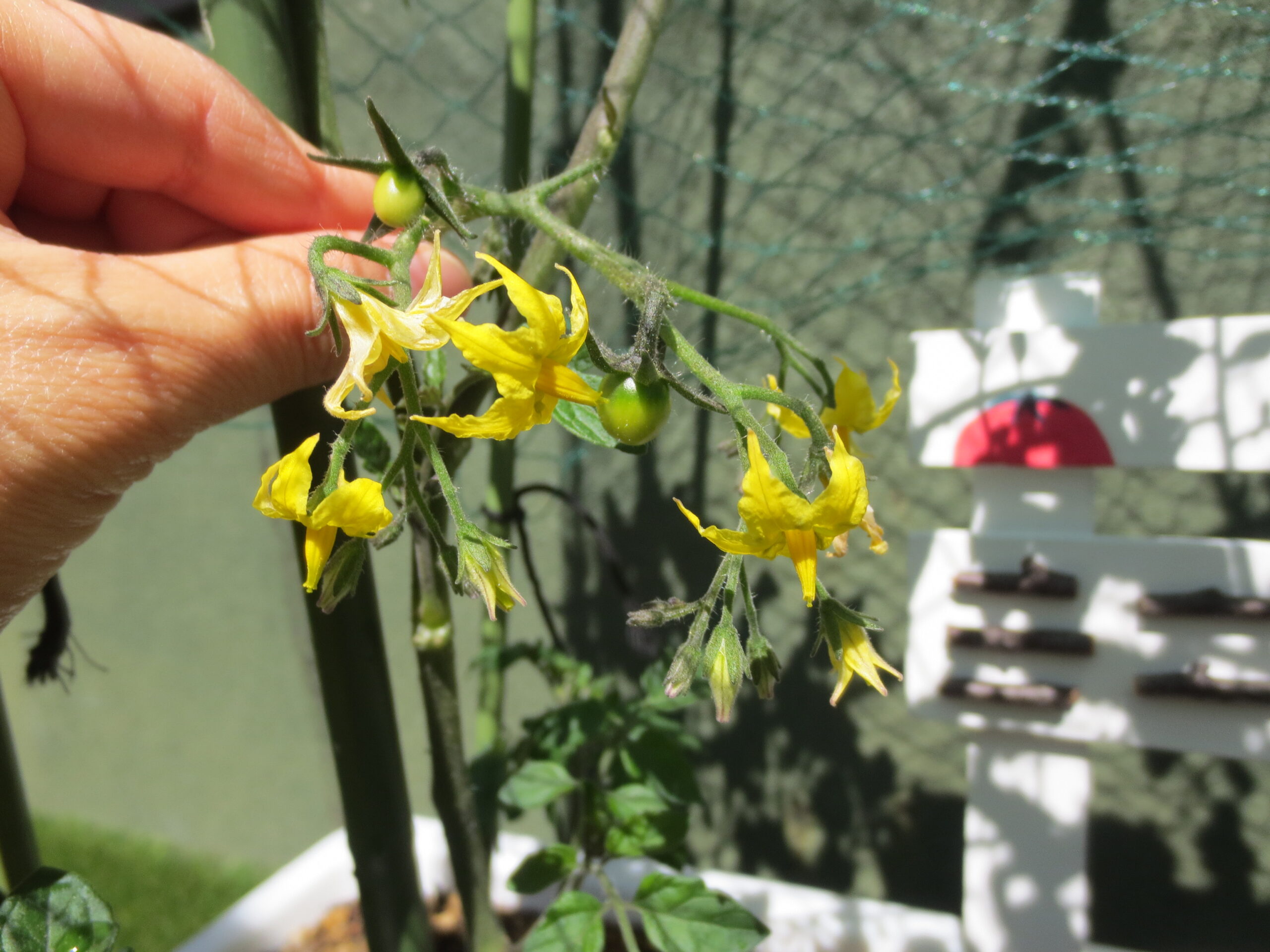 今日、水やりをするためにテラスへ出ると「先生!!!見て!!!ミニトマトがなってるよ!!!」と目をキラキラさせながら