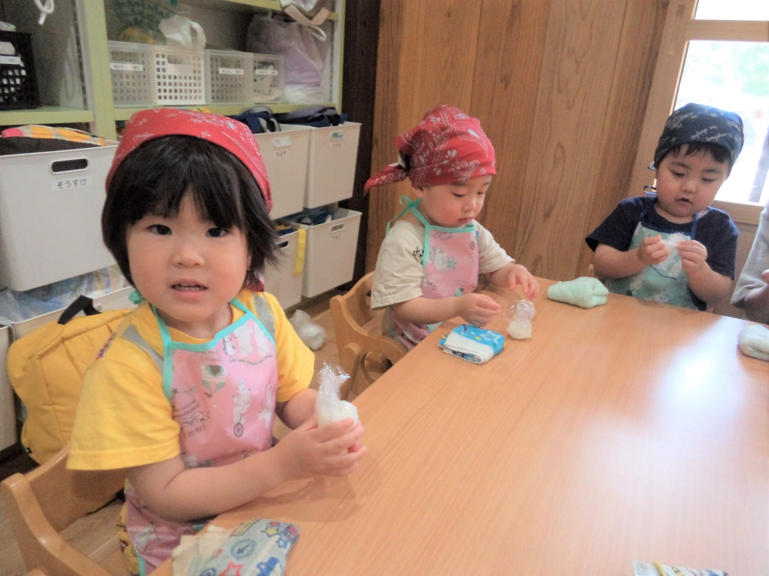 今日は、くり組さんとどんぐり組さんでおにぎりクッキングをしました!