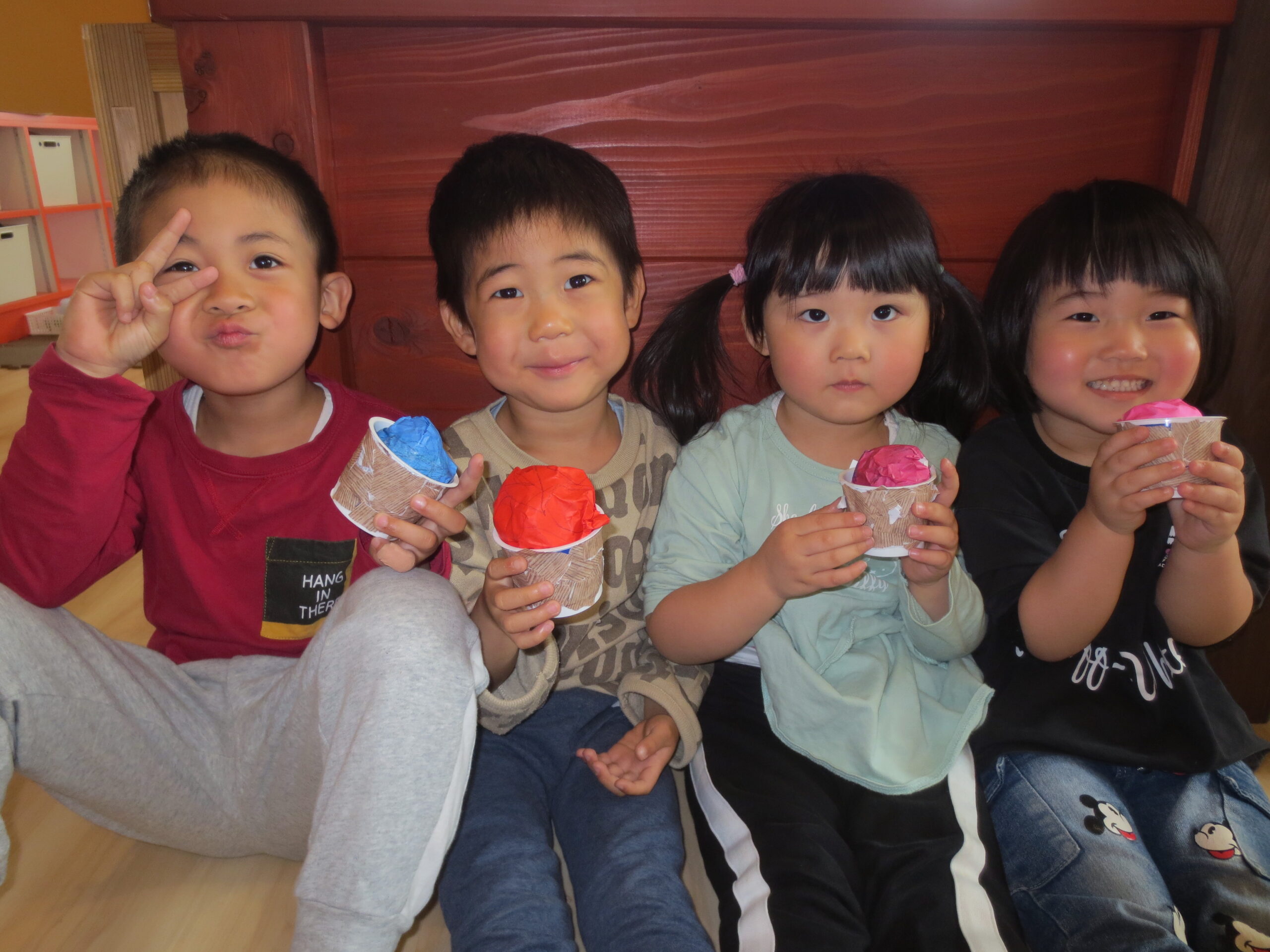 今回作ったアイスだけではなく今後も様々な素材を使いながらアイスの数を増やしていき、あいす屋さんごっこに繋げていきたいと思います。
