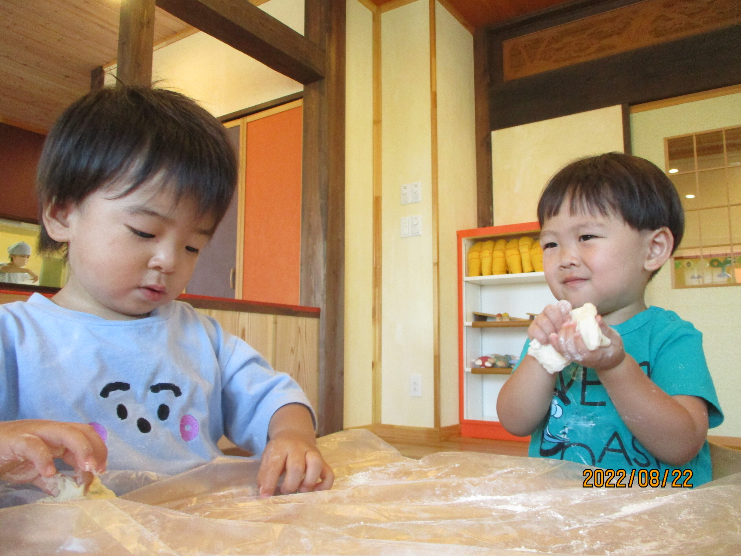 潰して平たくしたりちぎったりもして遊んでいました。手につくのが苦手な子もいましたが、少しずつ慣れて楽しんでいました!
