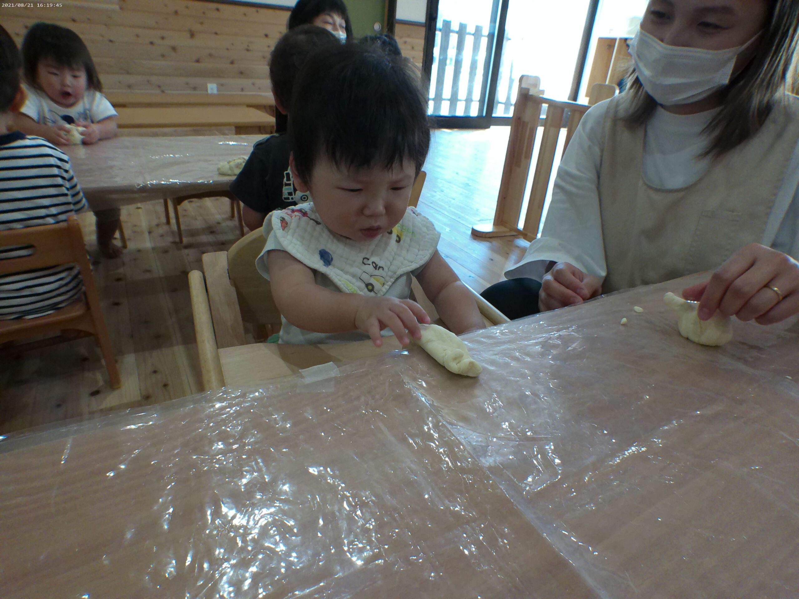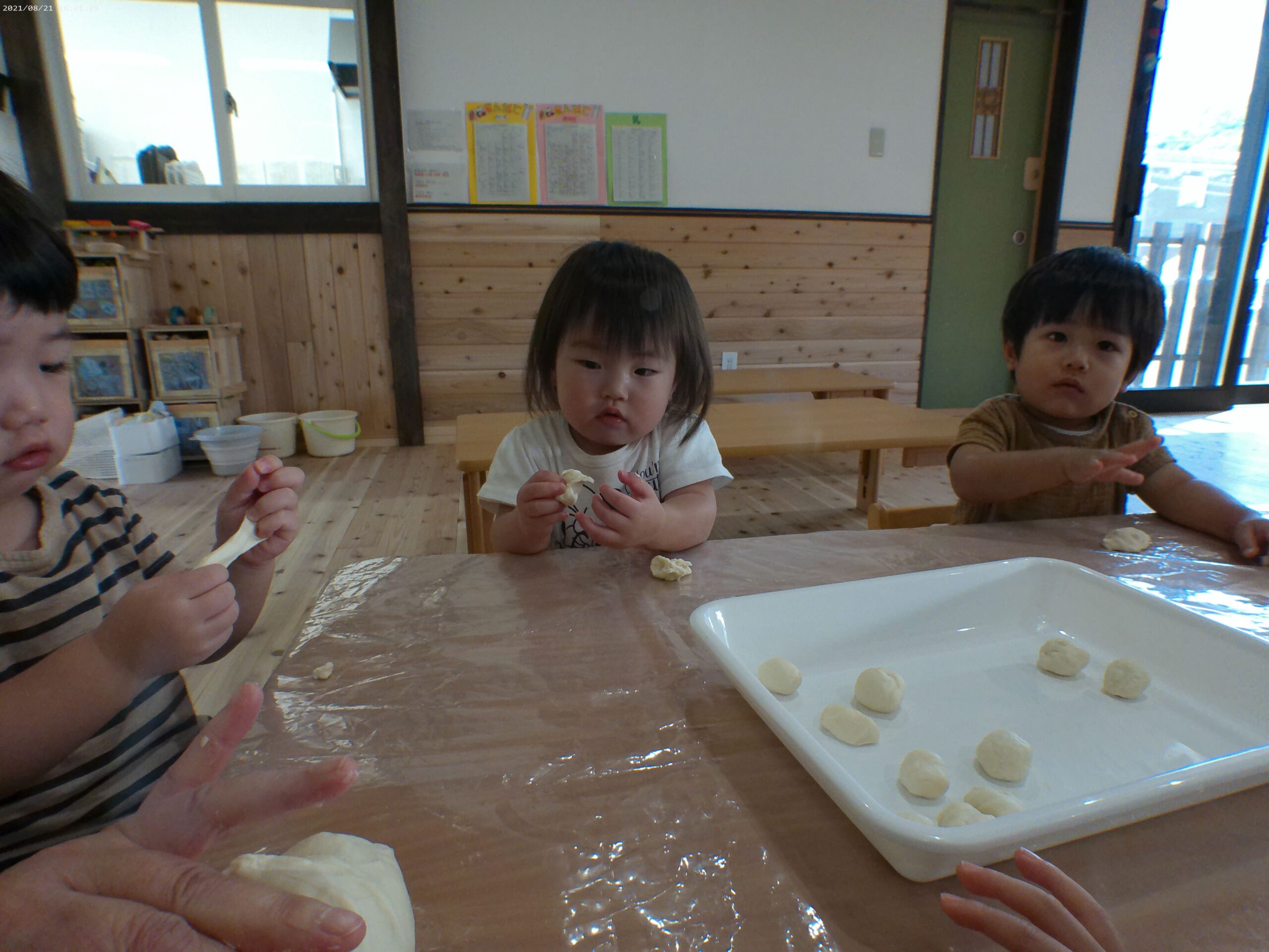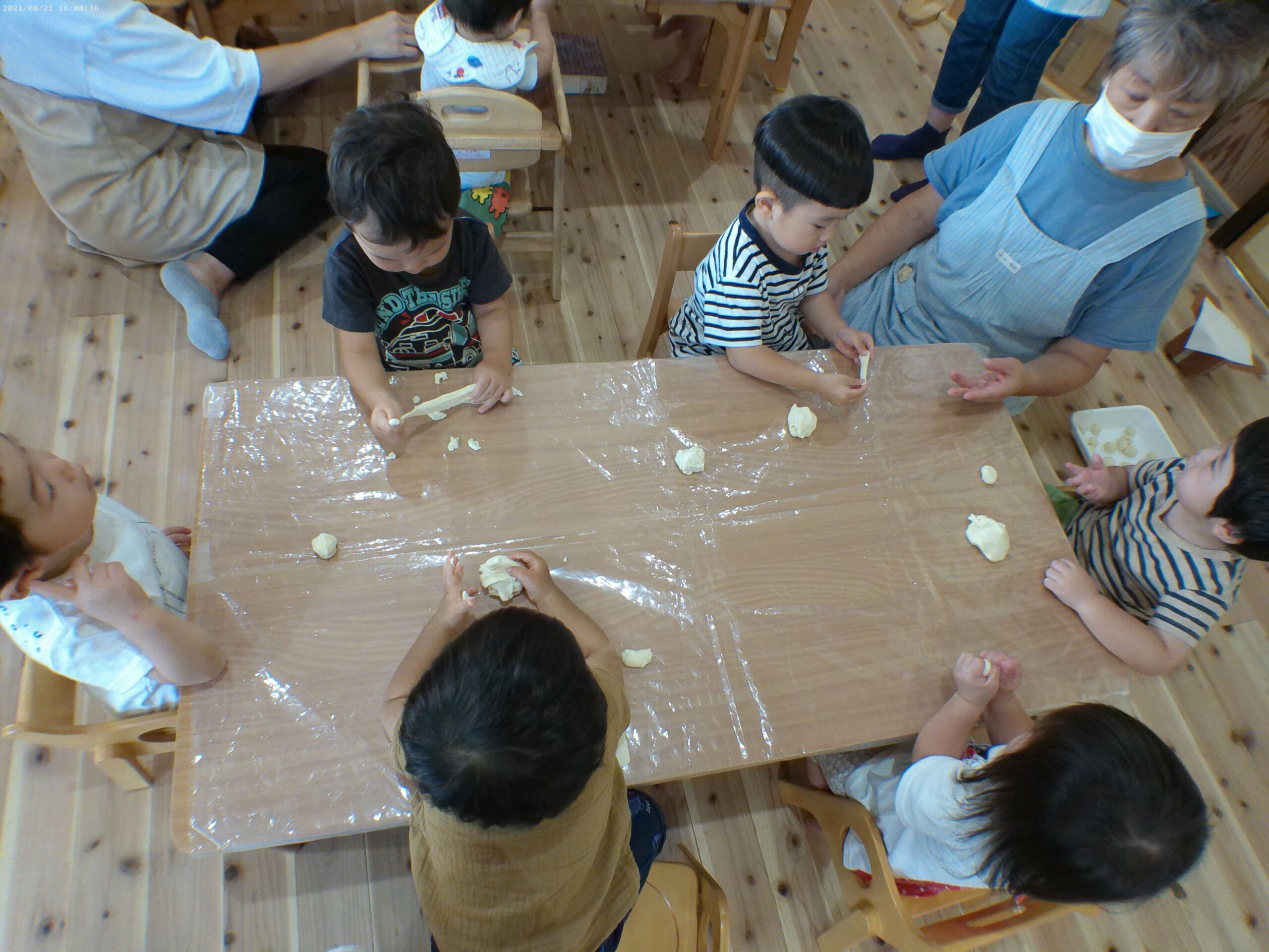 小麦粉粘土をコネコネ・・クルクル・・ 丸めるって意外と難しいのね・・
