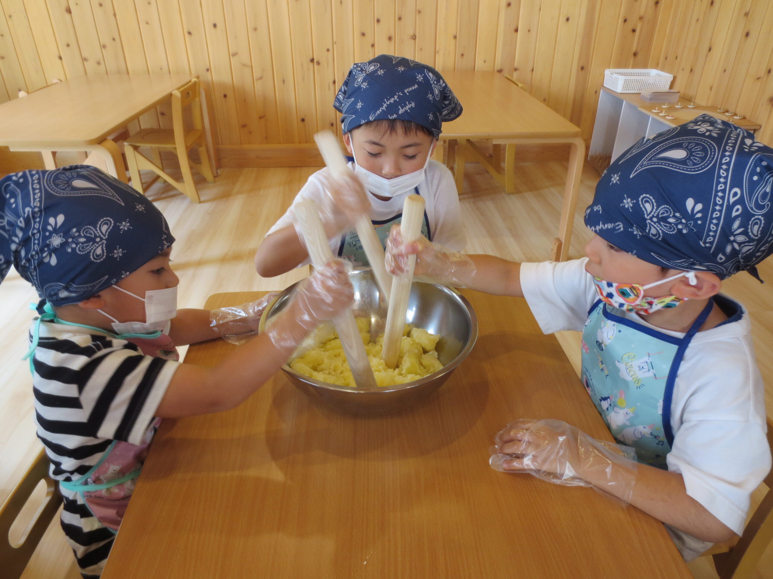 つぶした後は、「おいしくな~れ!」と声をかけながらコネコネ~