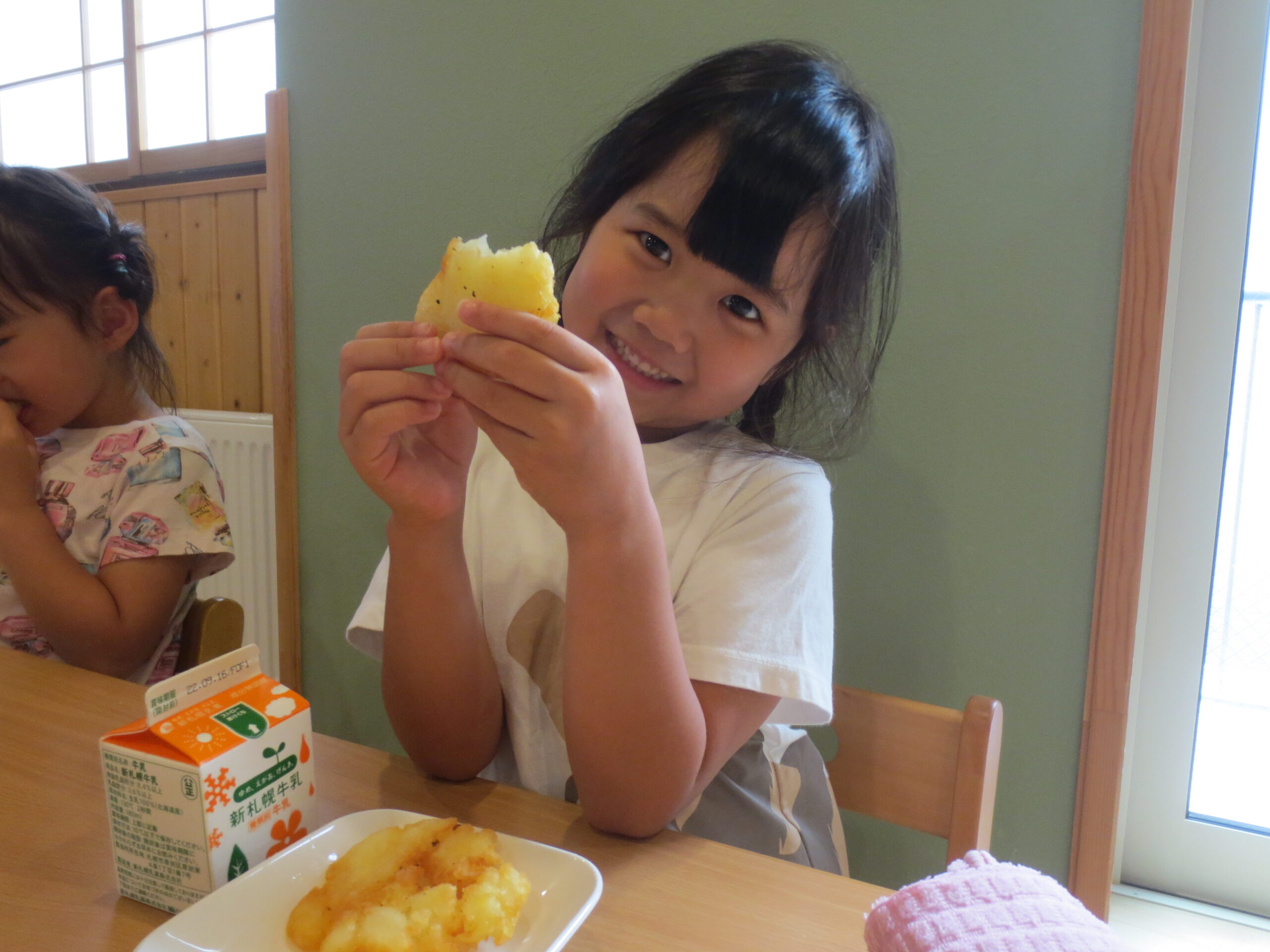 みんなが洗ってくれたじゃがいもは、ふかしいもに変身!