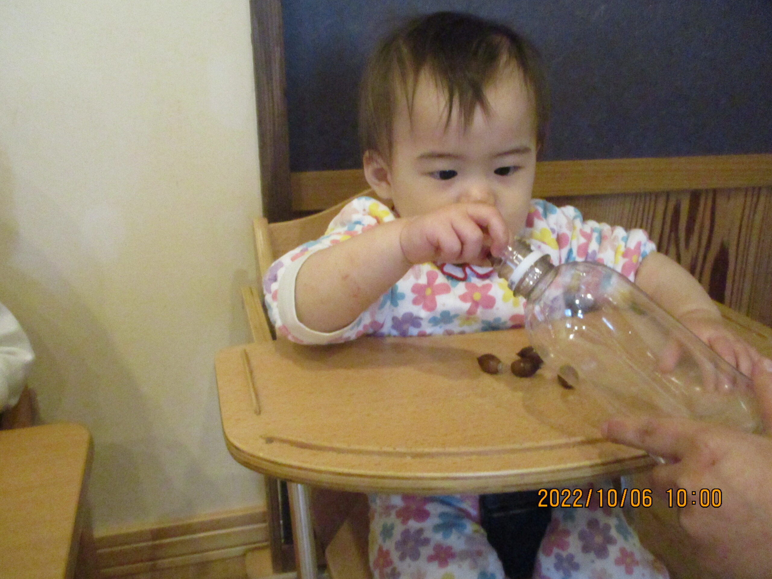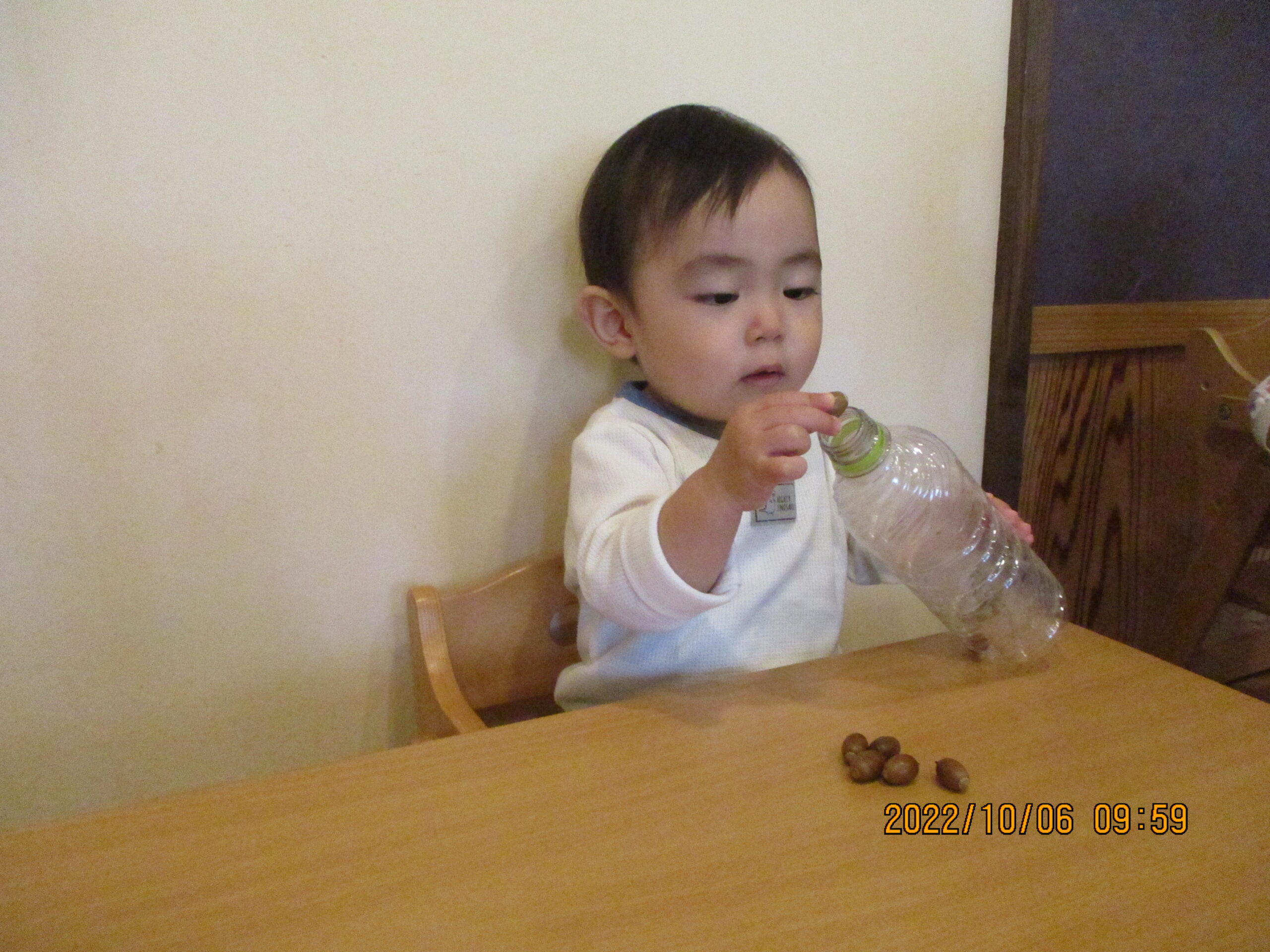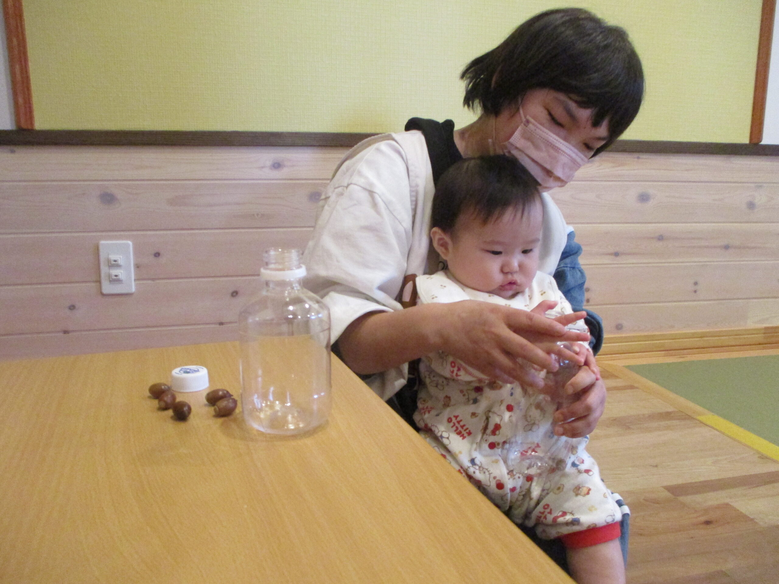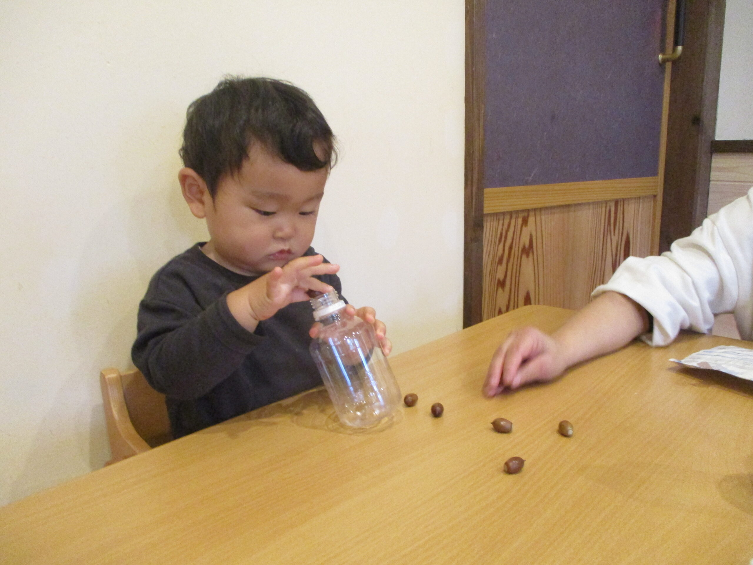 おさんぽの時にみんなで拾ったドングリで遊びました。