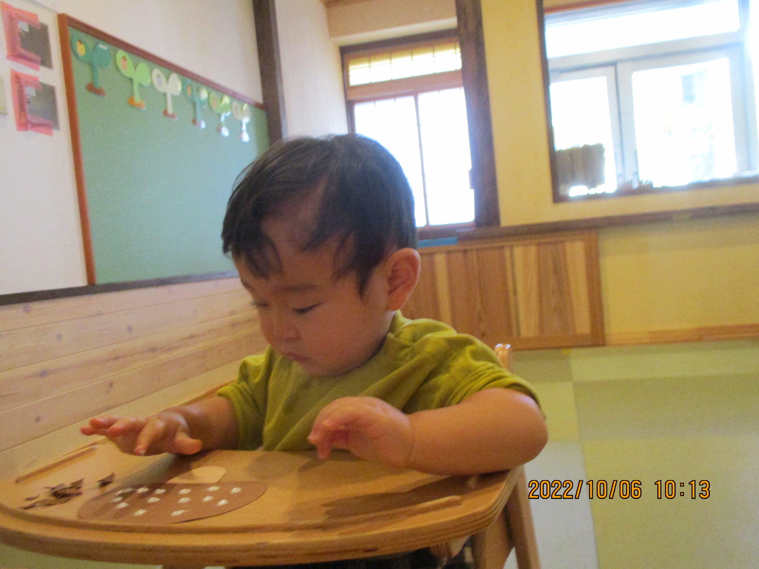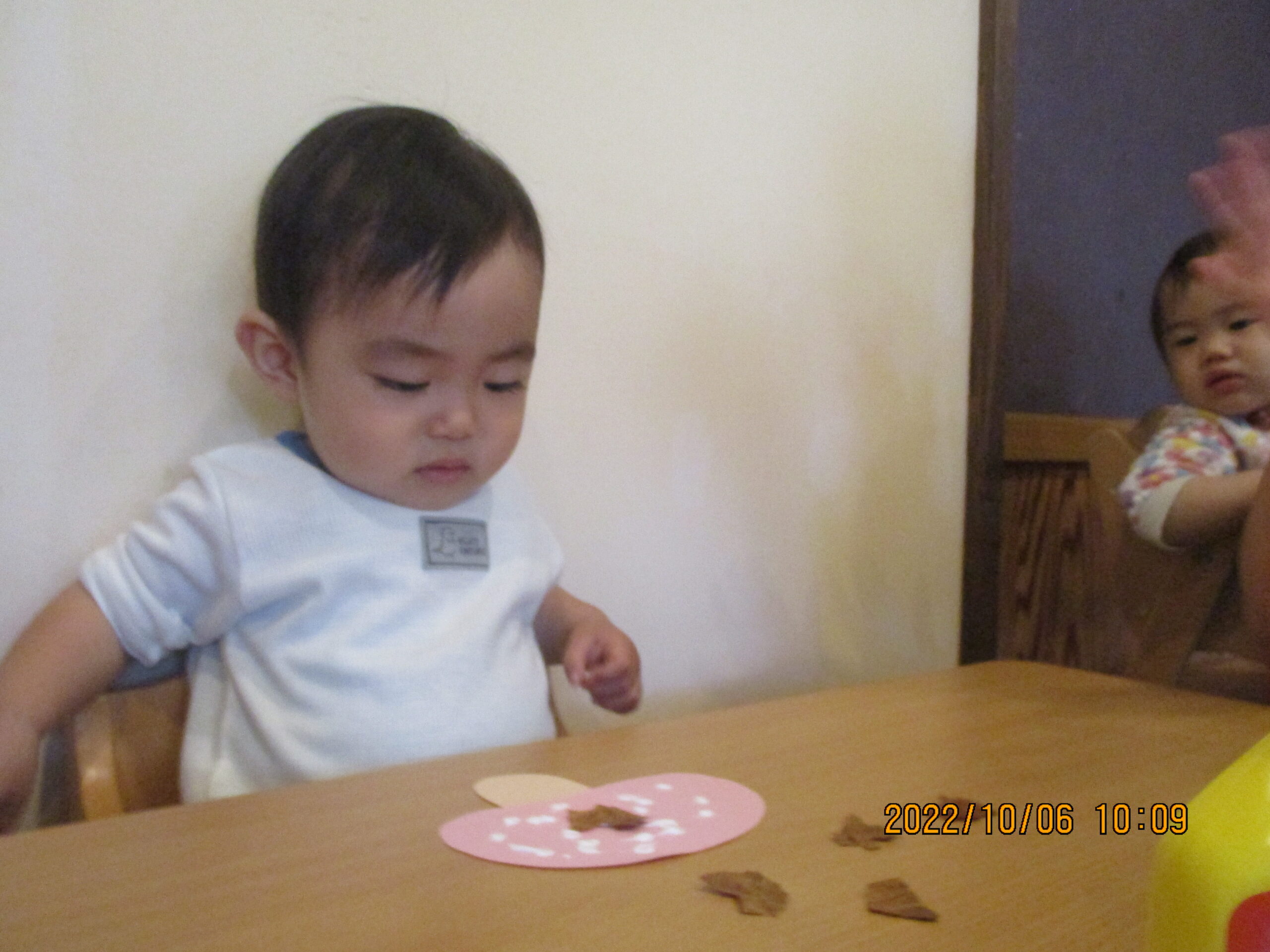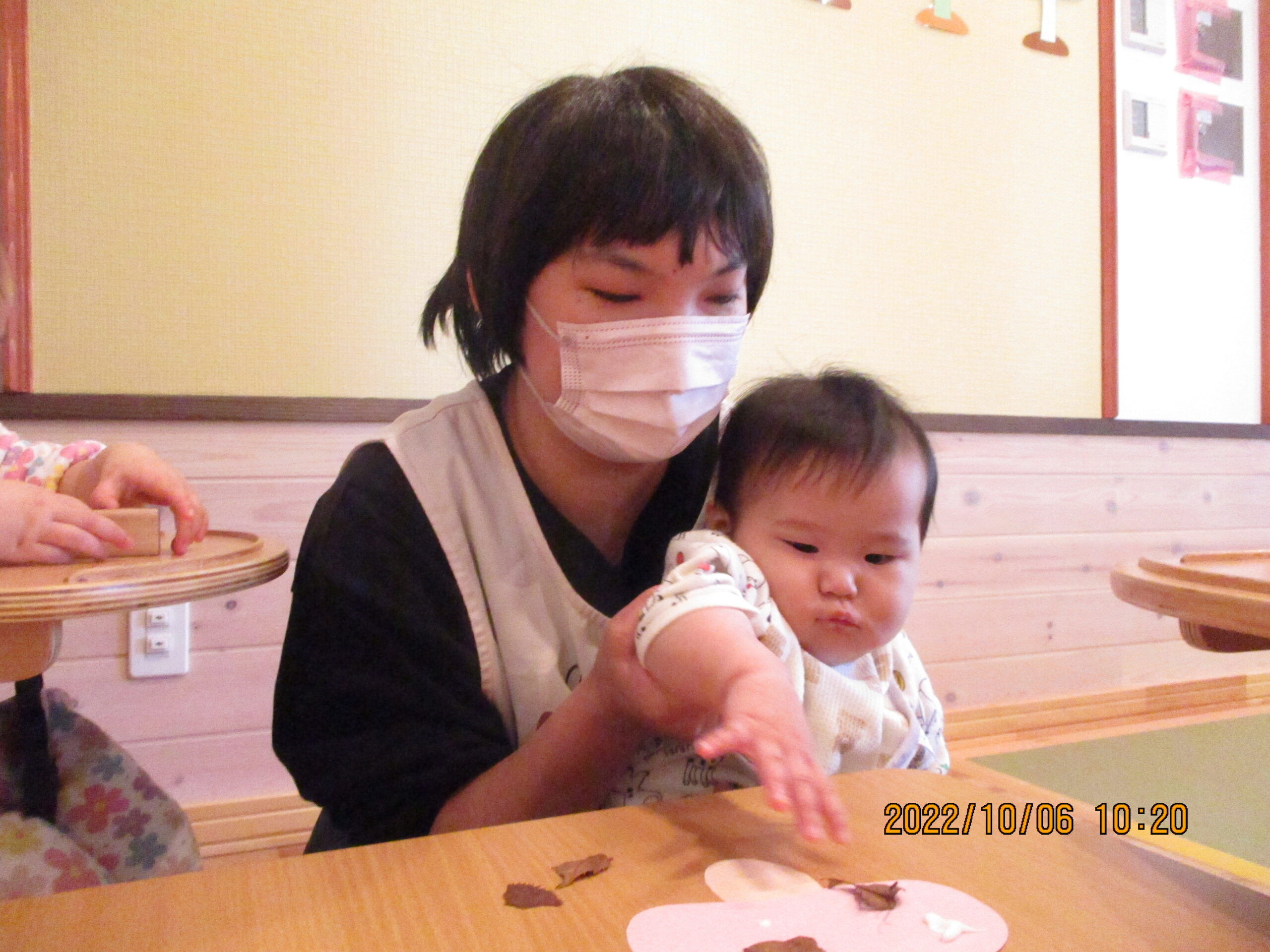 お散歩の時に、みんなで放ろった落ち葉をちぎちぎ・・・