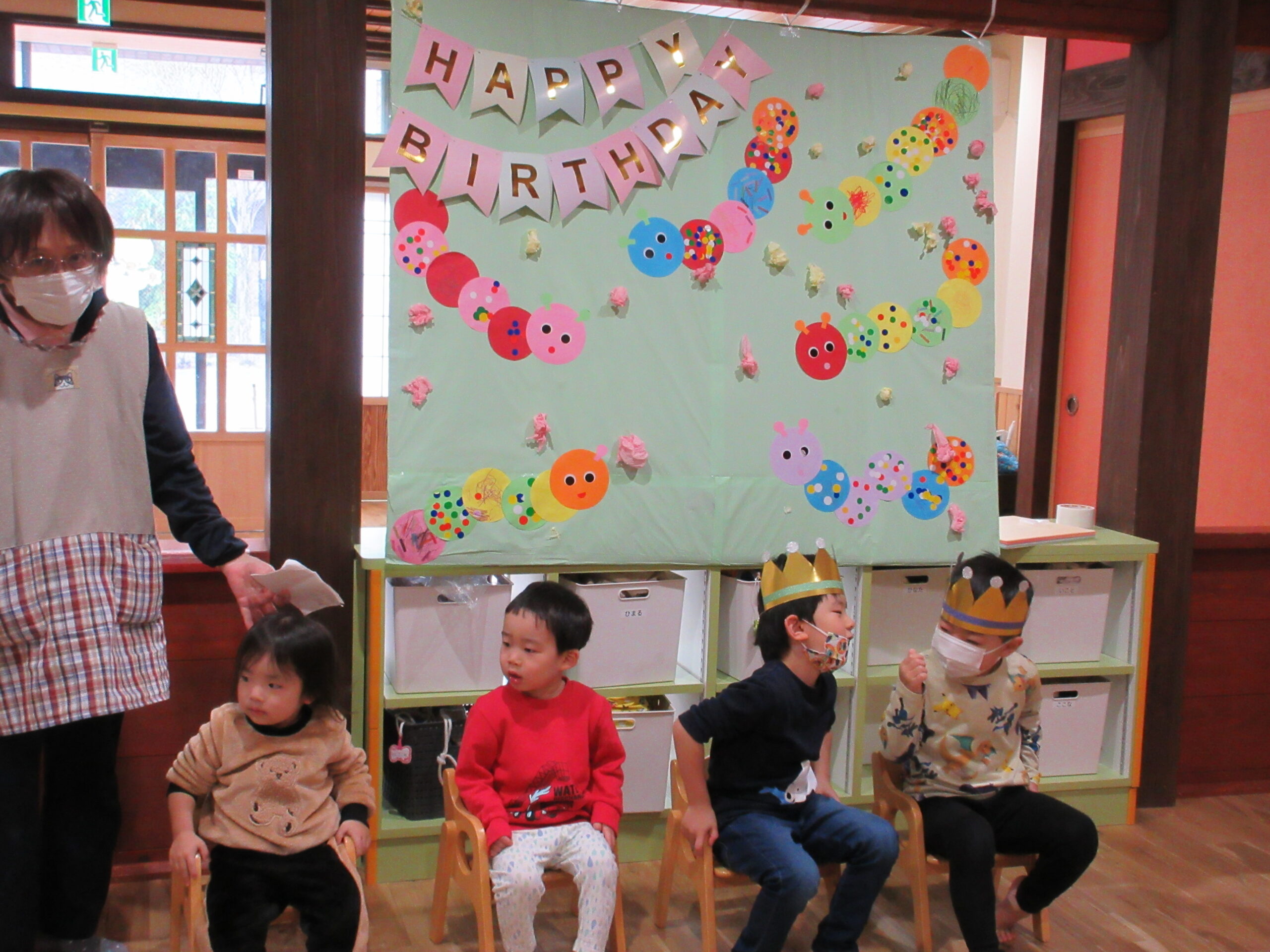 10月のお誕生会をしました! みんなに「おめでとう!」と言われ恥ずかしそうにするお誕生児さん。