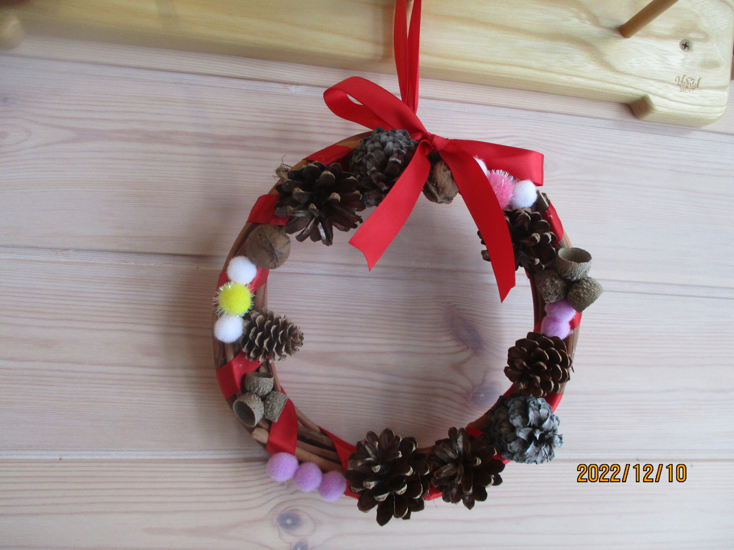 今日は子ども達と一緒にクリスマスのリースを作りました。