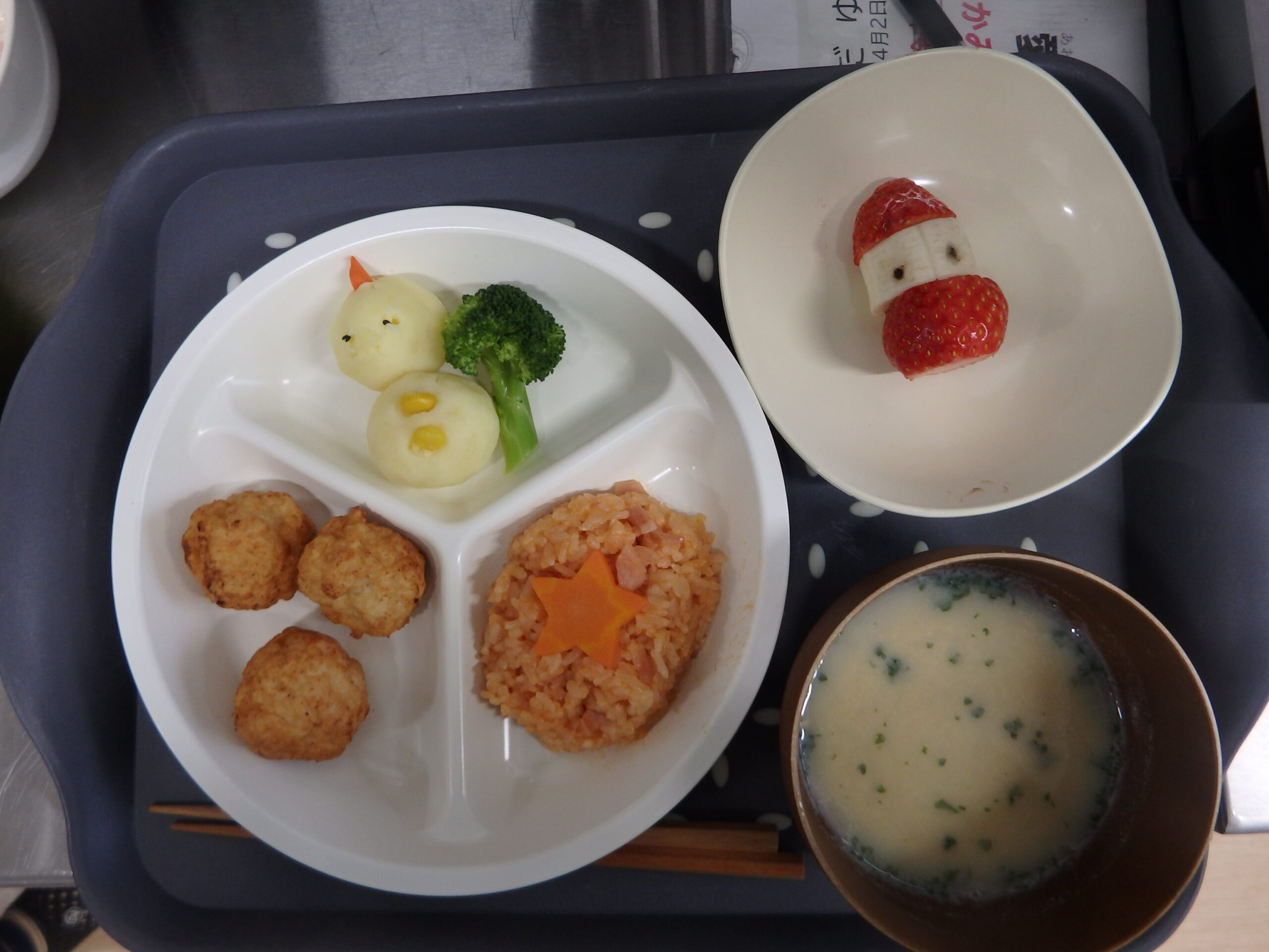 楽しんだ後は、クリスマス特別メニュー! みんな嬉しそうに、美味しそうに食べてましたよ!