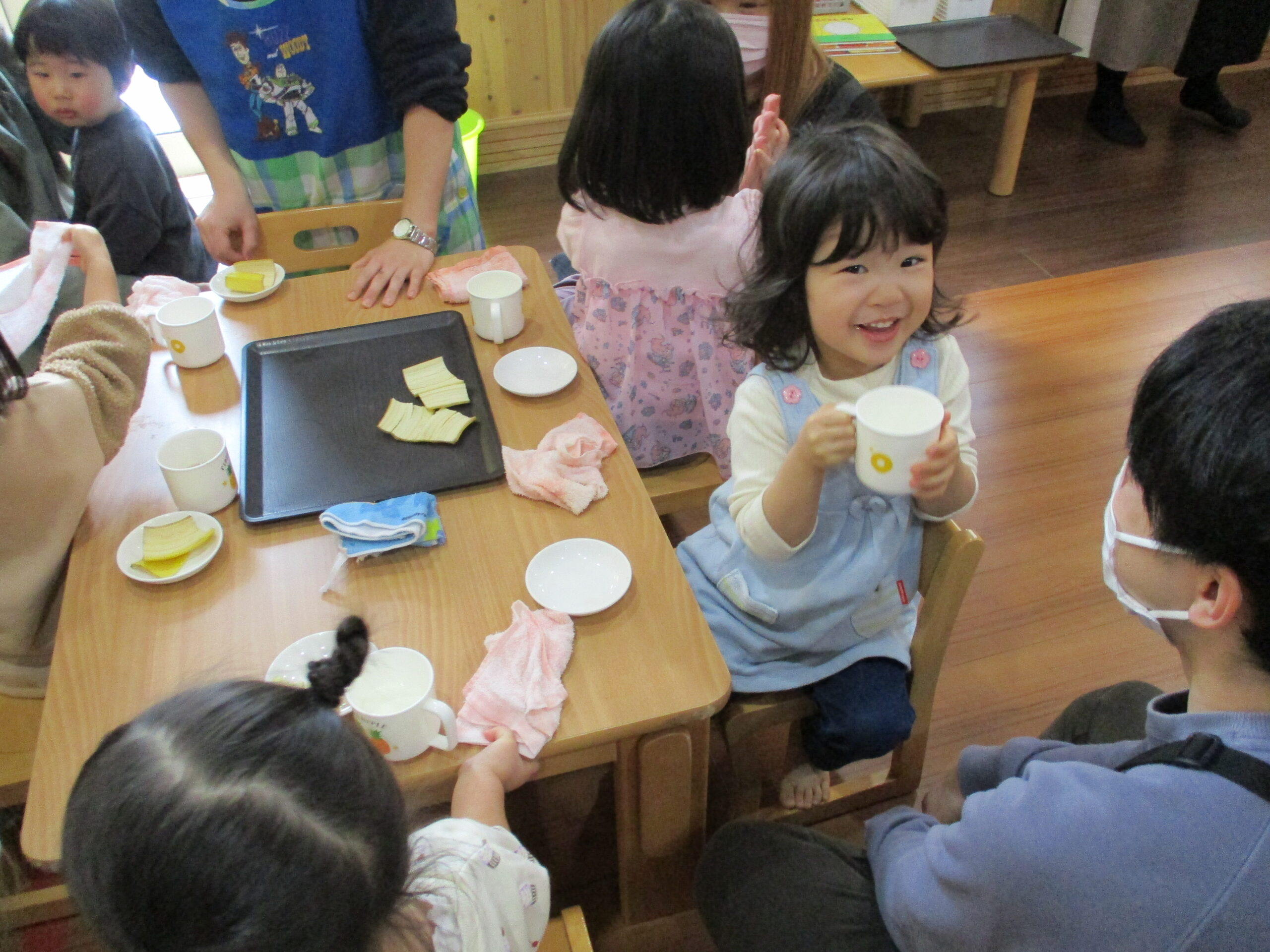 朝の会の後は朝おやつ🍌<br /> 「美味しいね!」