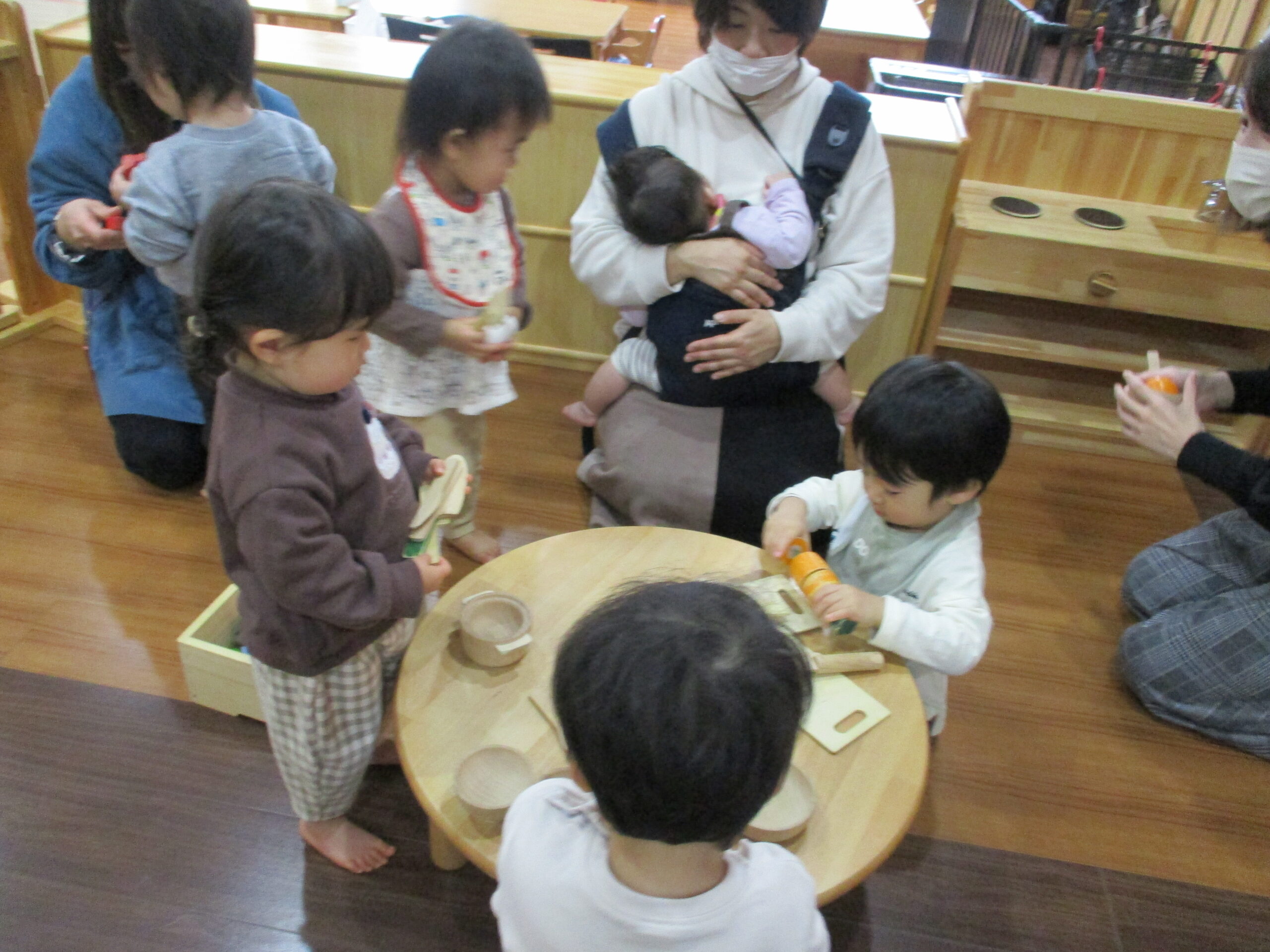 朝おやつの後はクラス毎、木のおもちゃで遊びます。<br /> どんぐりさん。<br /> お気に入りのおもちゃ🥰
