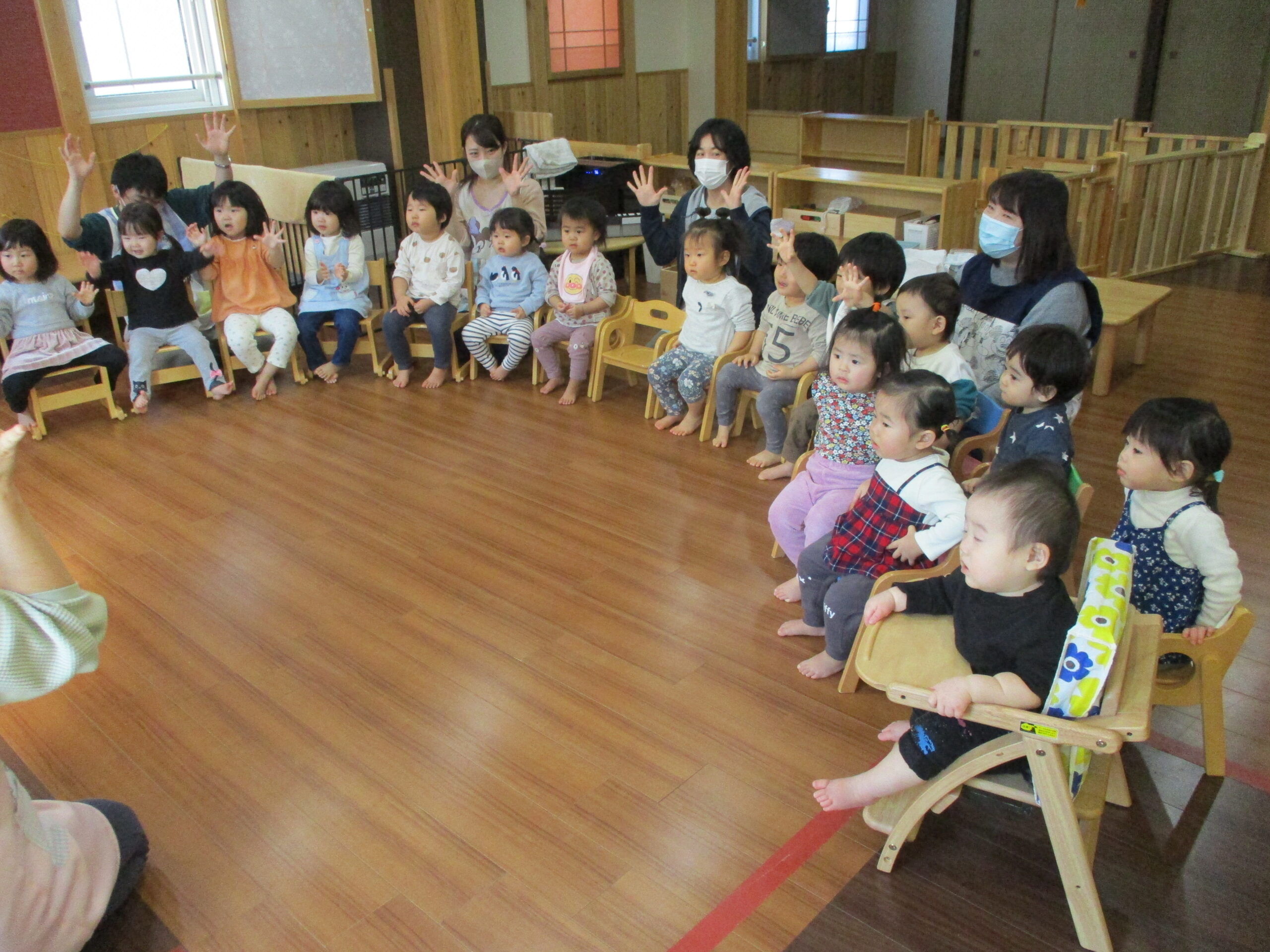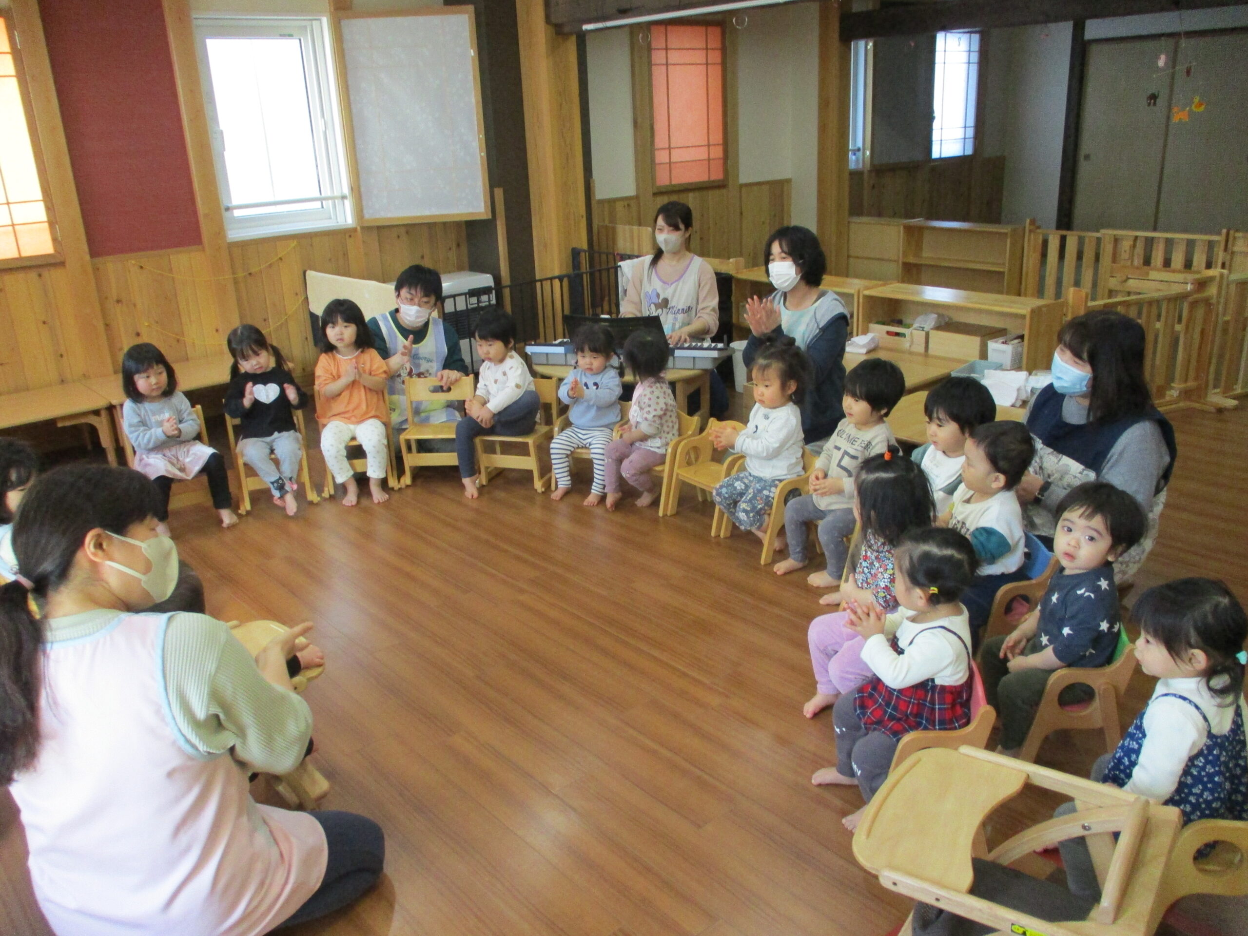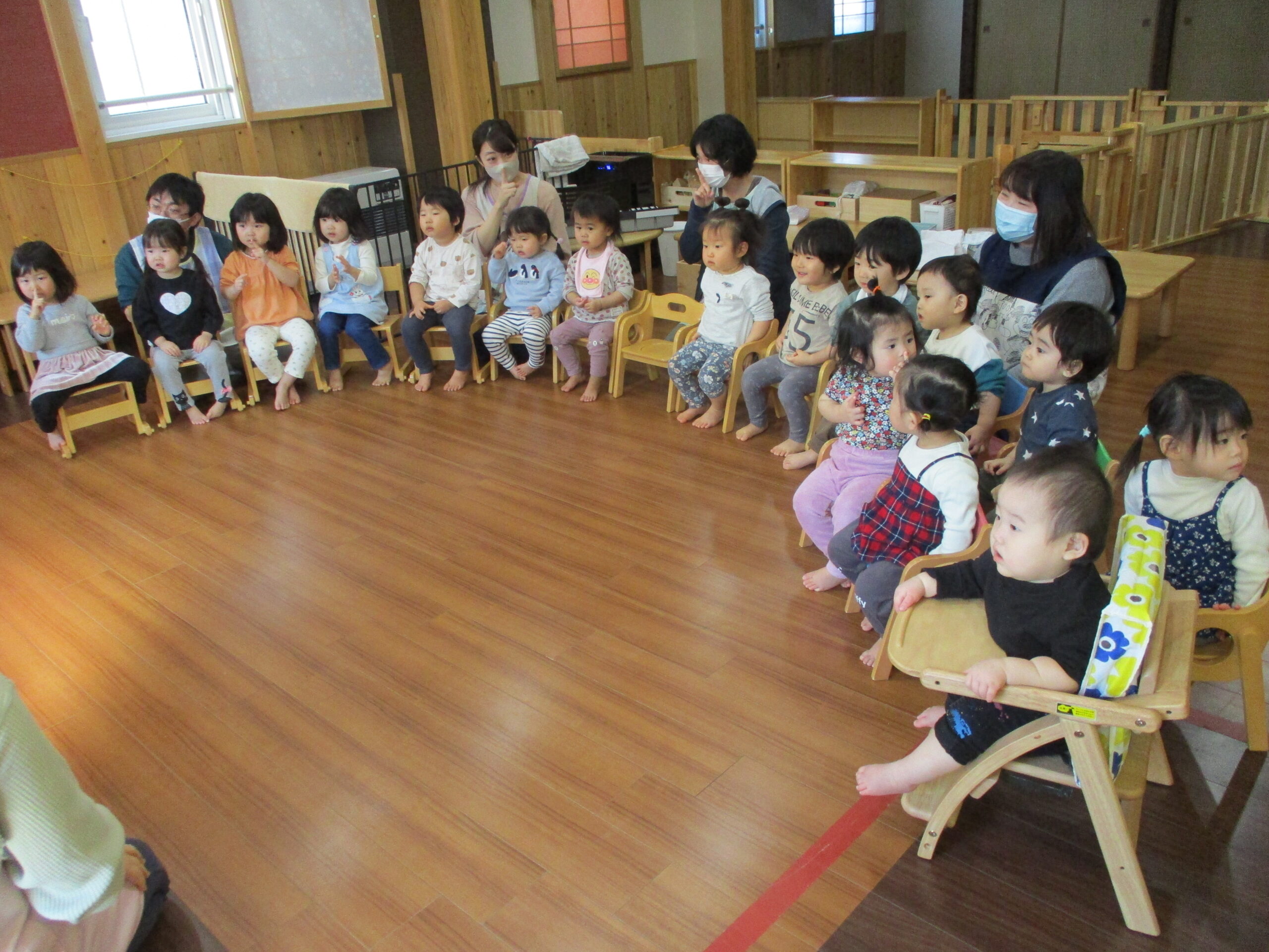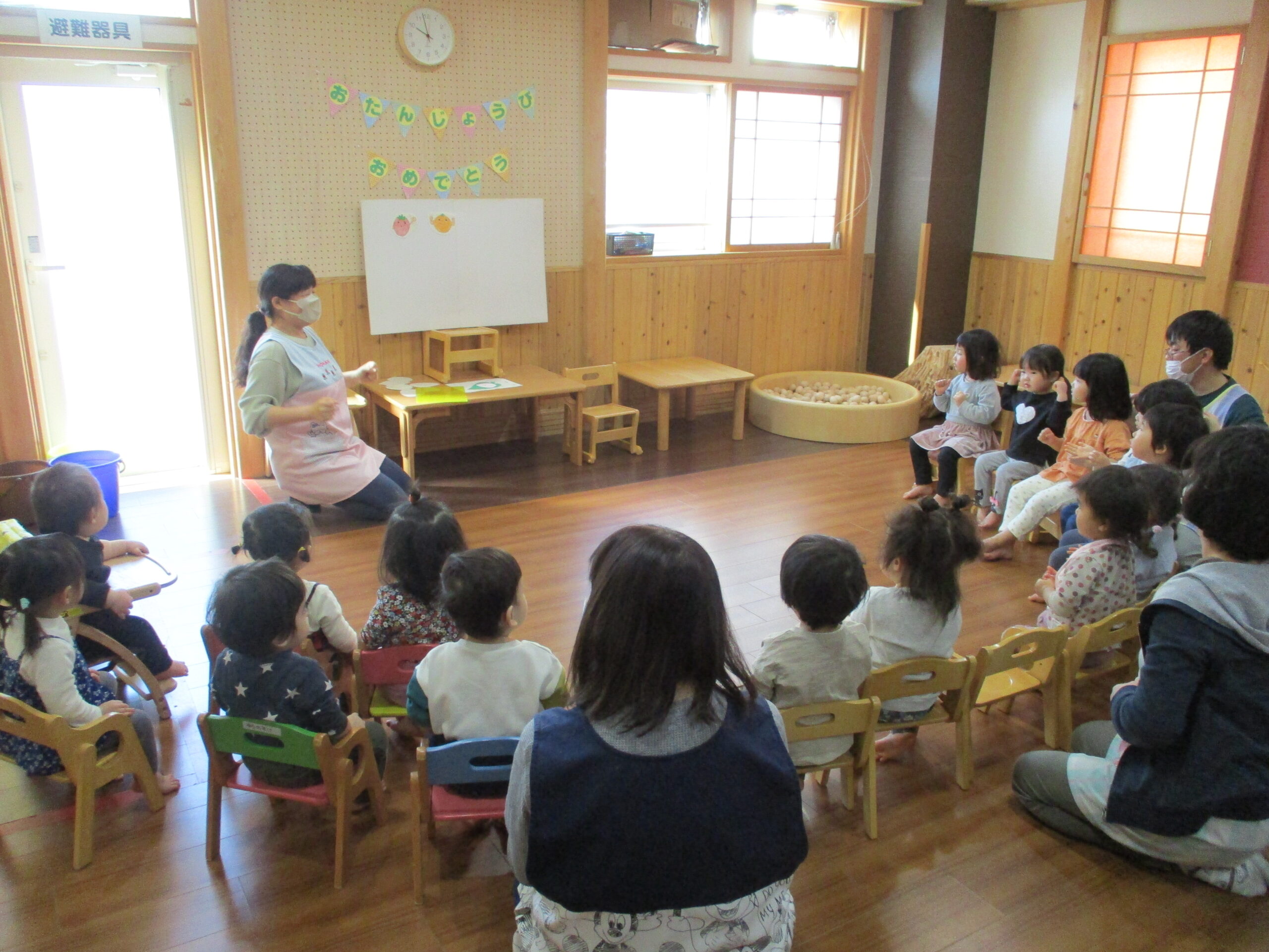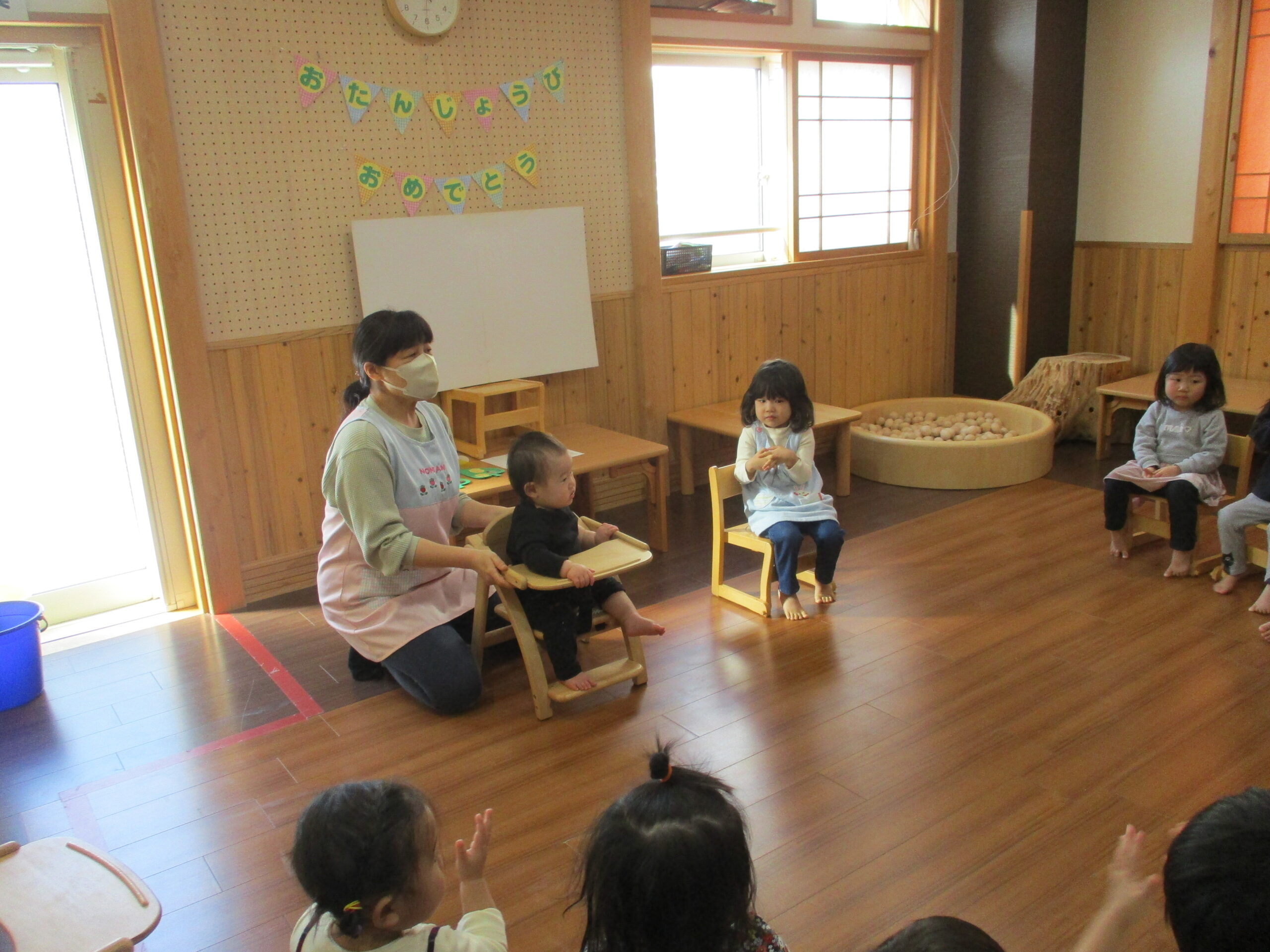 2月生まれのお誕生会がありました。<br /> どんぐりさんとくるみさんのお友だちです。