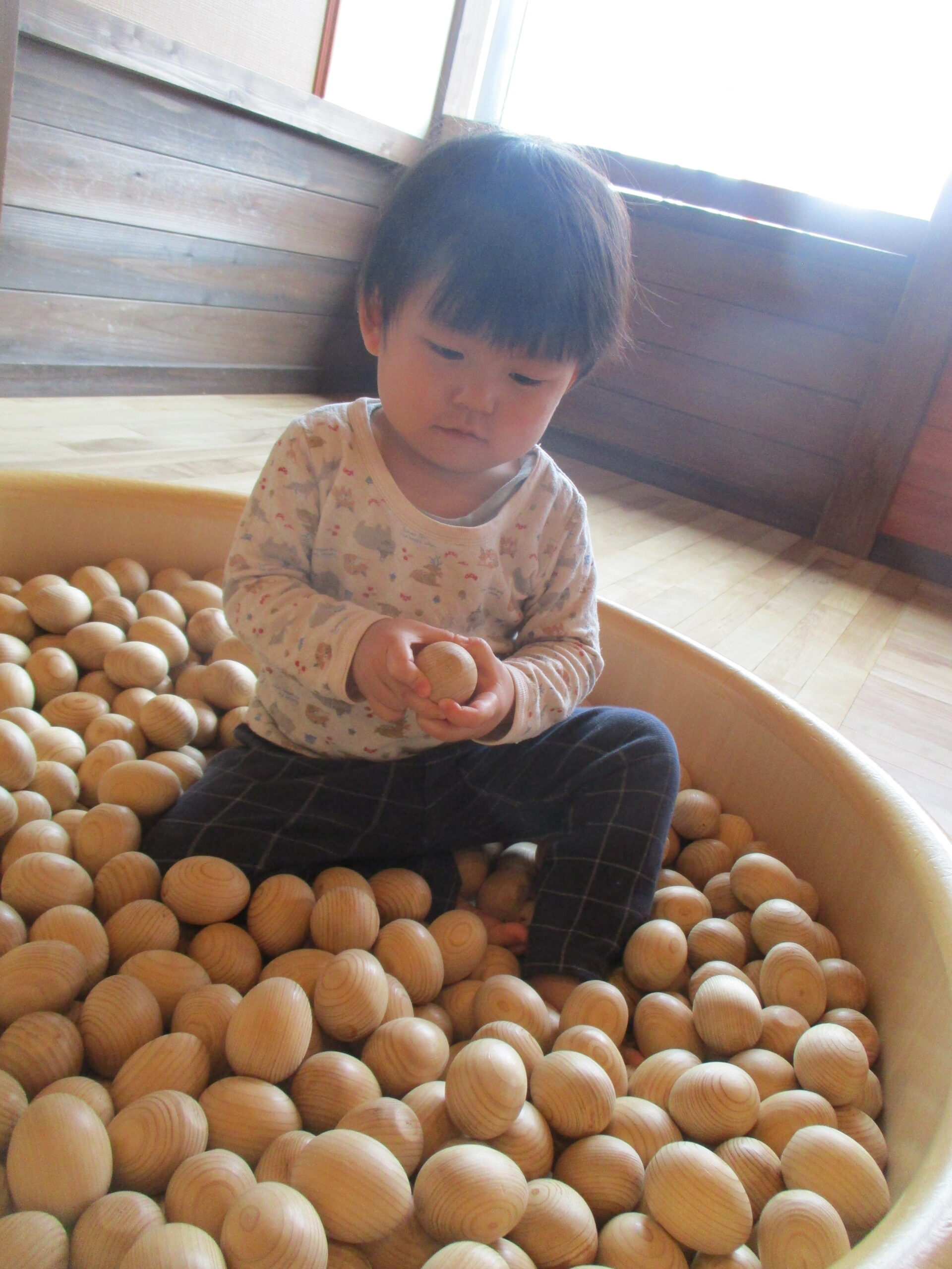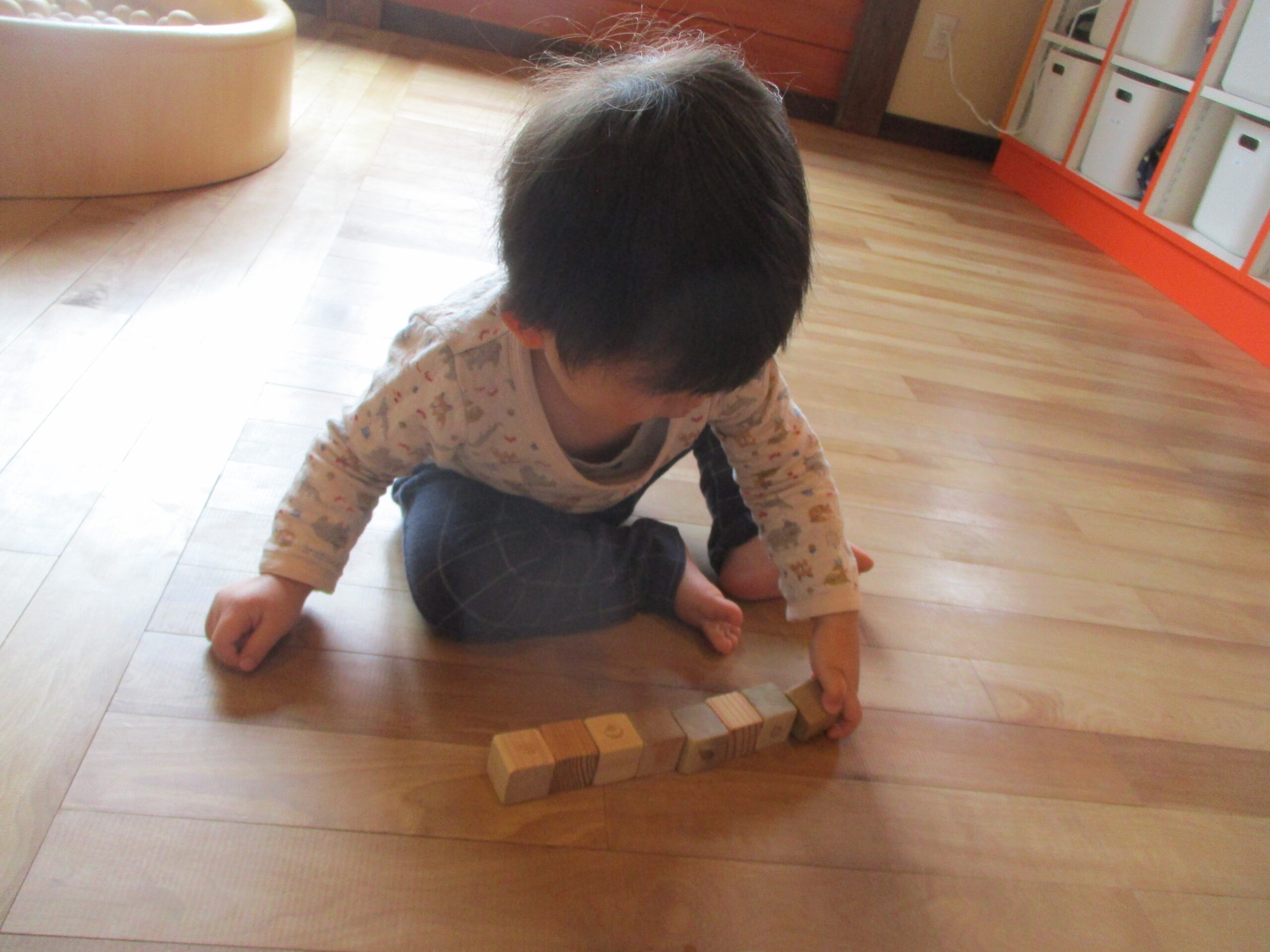 昨日の活動では積み木やたまごプールで遊びました。積み木では重ねたり、横に並べたりと楽しく遊んでいましたよ!!