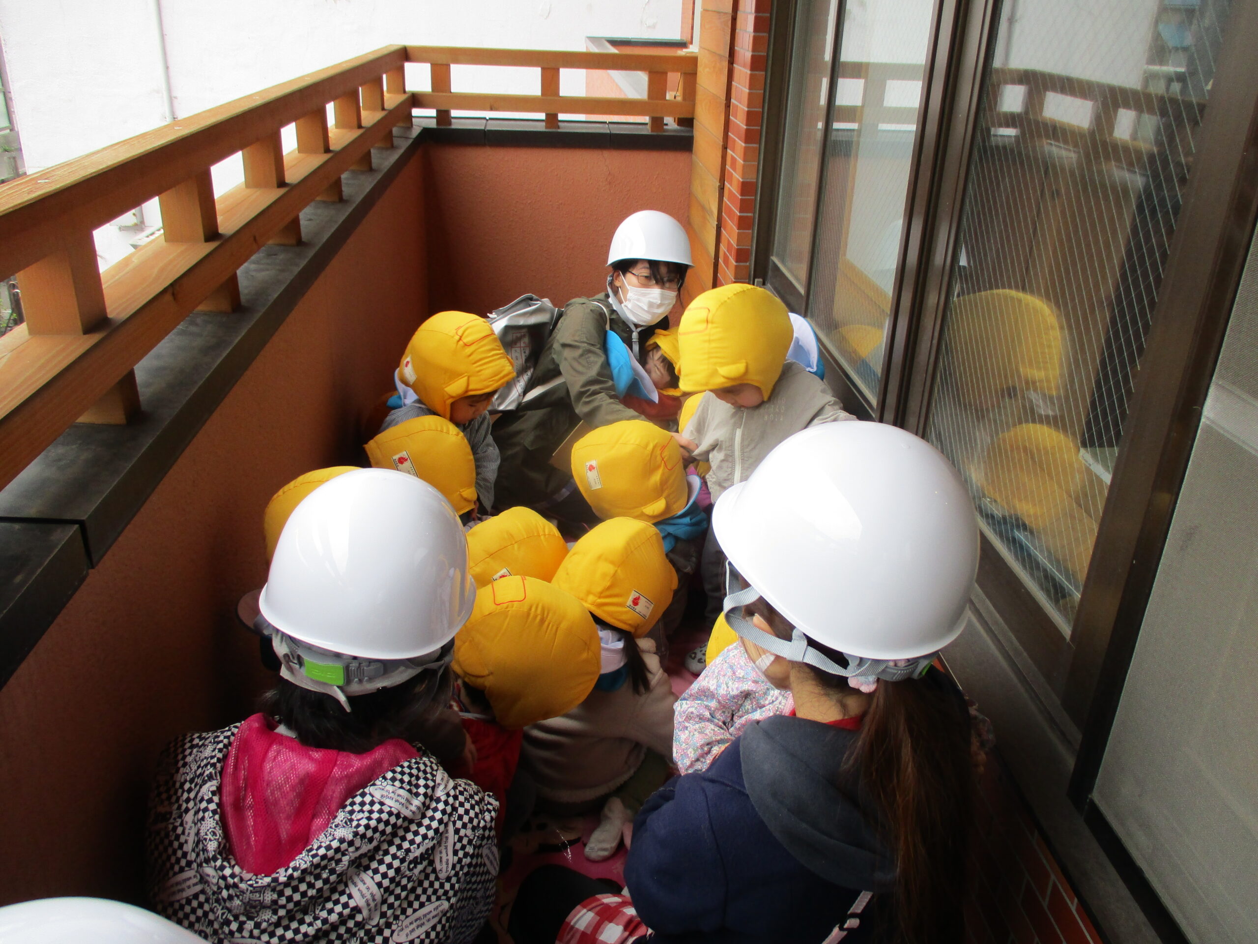 火災を想定した訓練で、ベランダに避難しました。